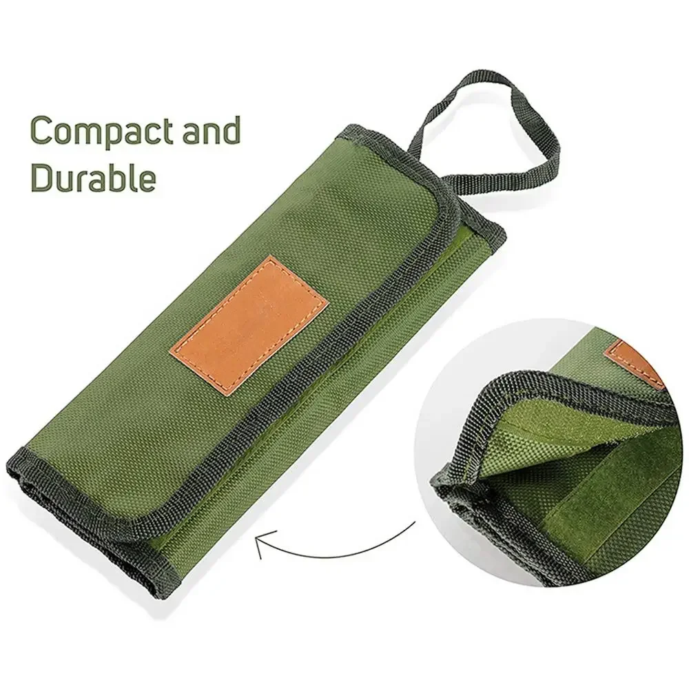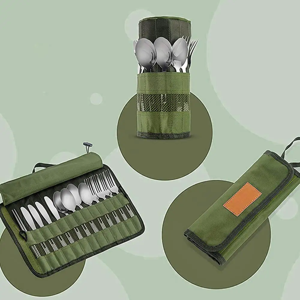 Outdoor Tableware Storage Bag Camping BBQ Cutlery Storage Portable Polyester Roll Up Pouch Bag Cutlery Storage For Travel Beach