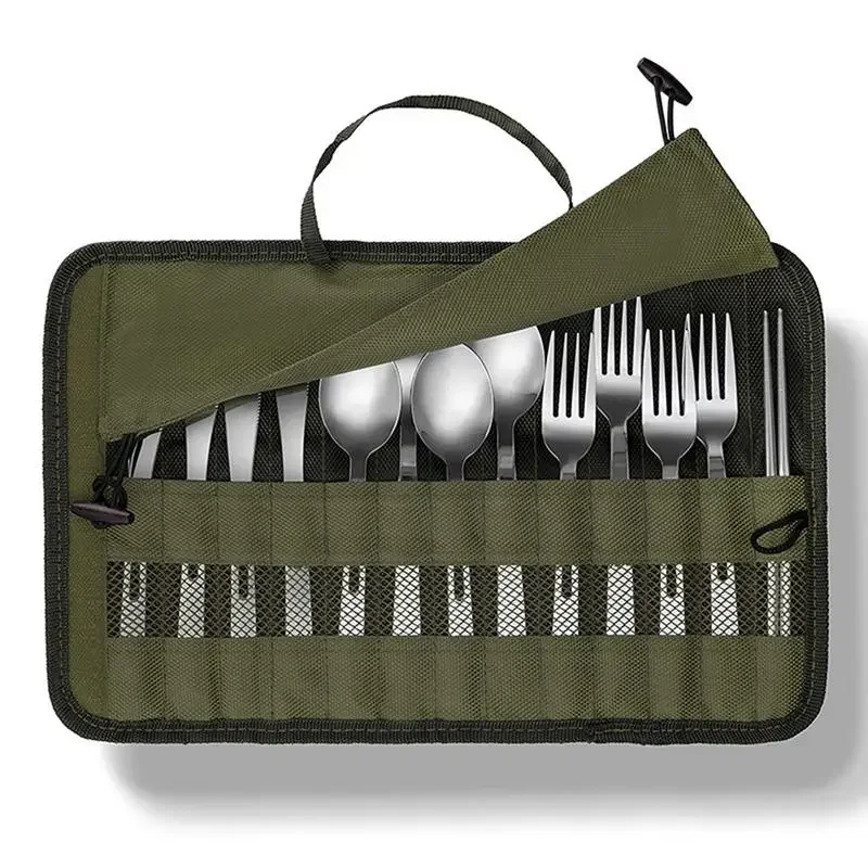 4.Special Design: The camping cutlery roll bag uses an army green weave design, which can blends beautifully with tableware decor and adds a pop of color to your dinnerware no matter the occasion.