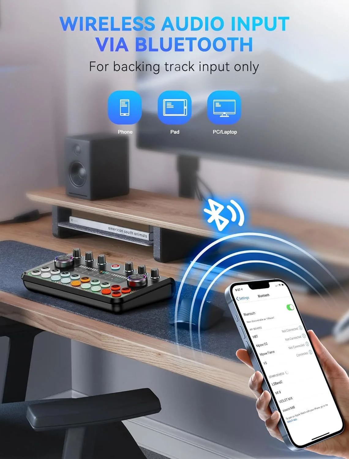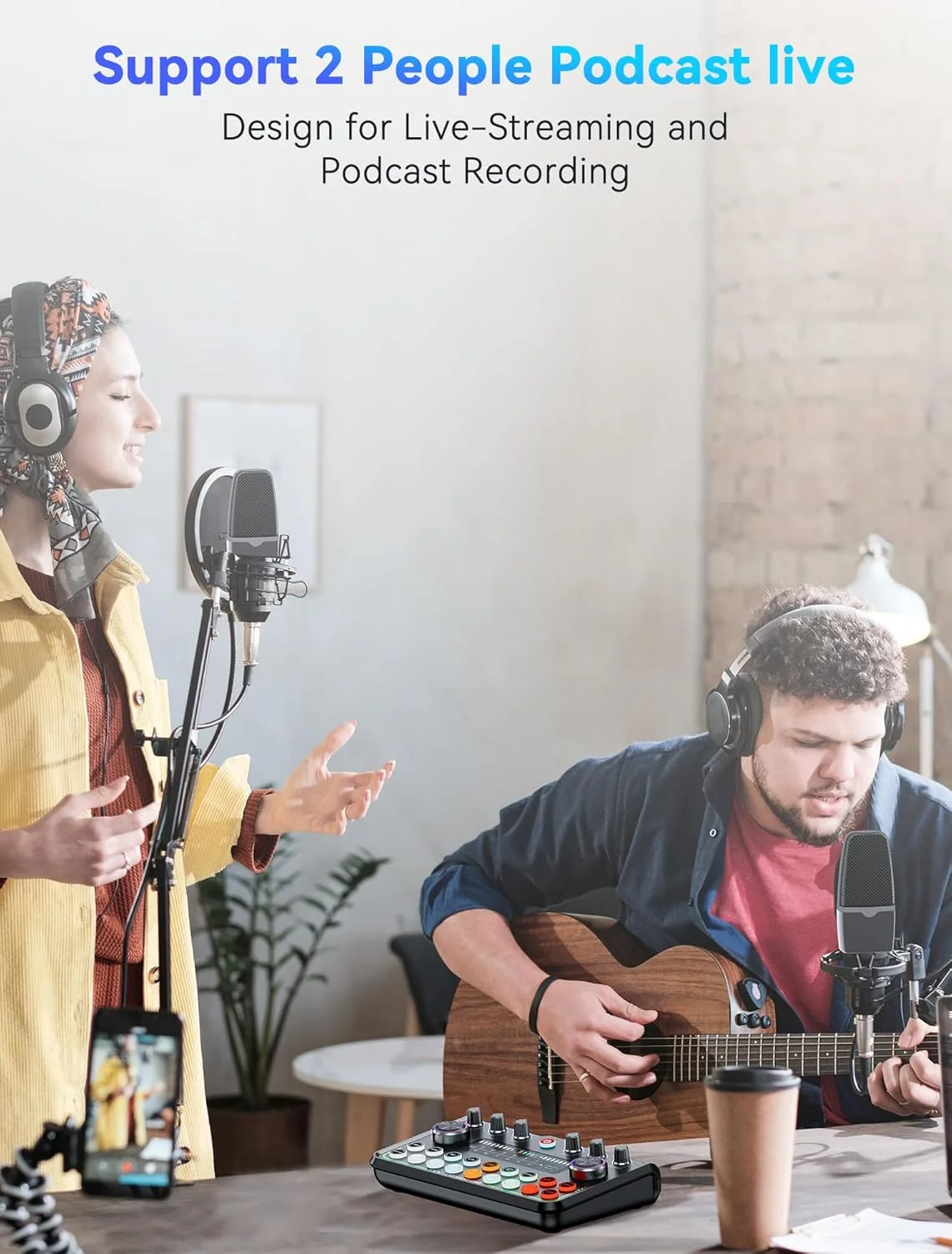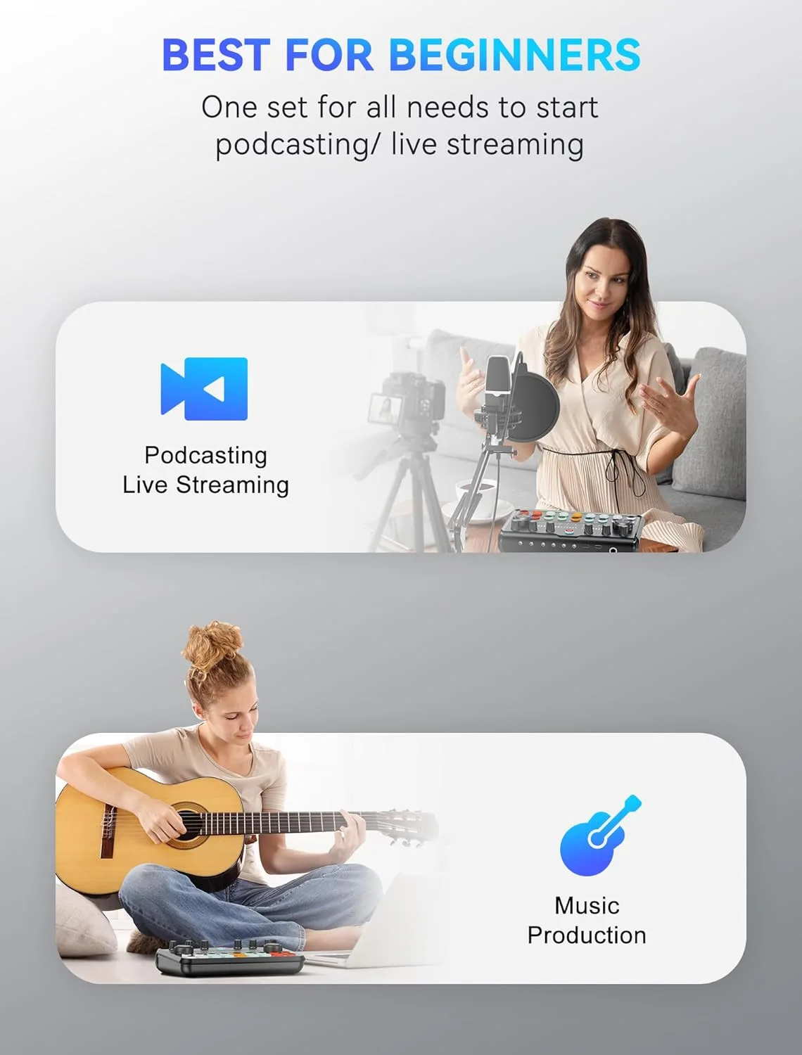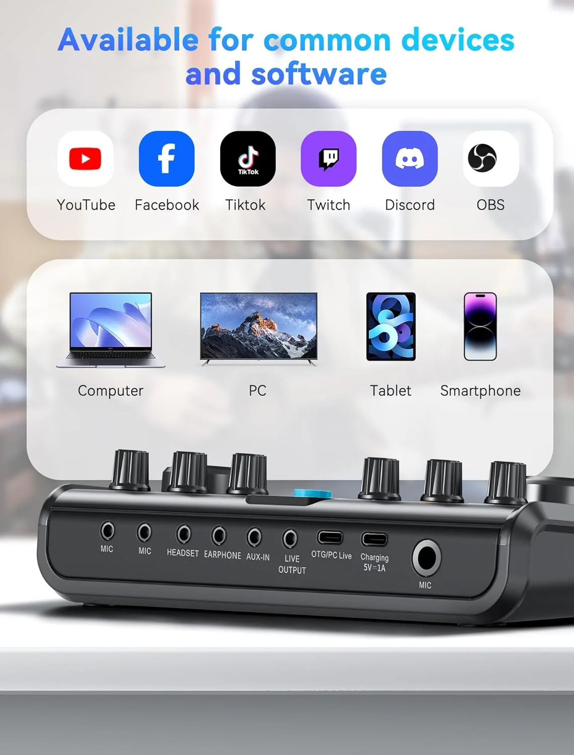 P99 Live Sound Card Podcast Equipment Live Broadcast DJ Device with MC98 Microphone Set For Music/Recording Live Streaming
