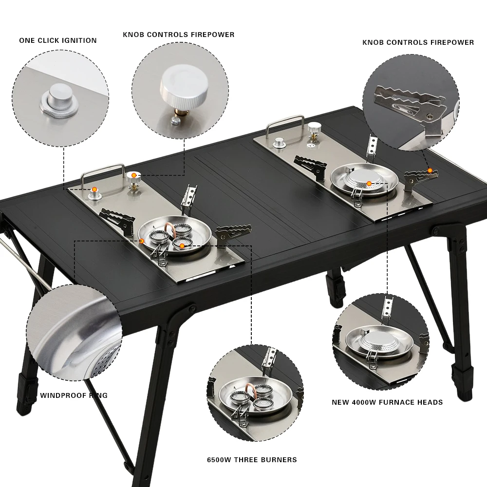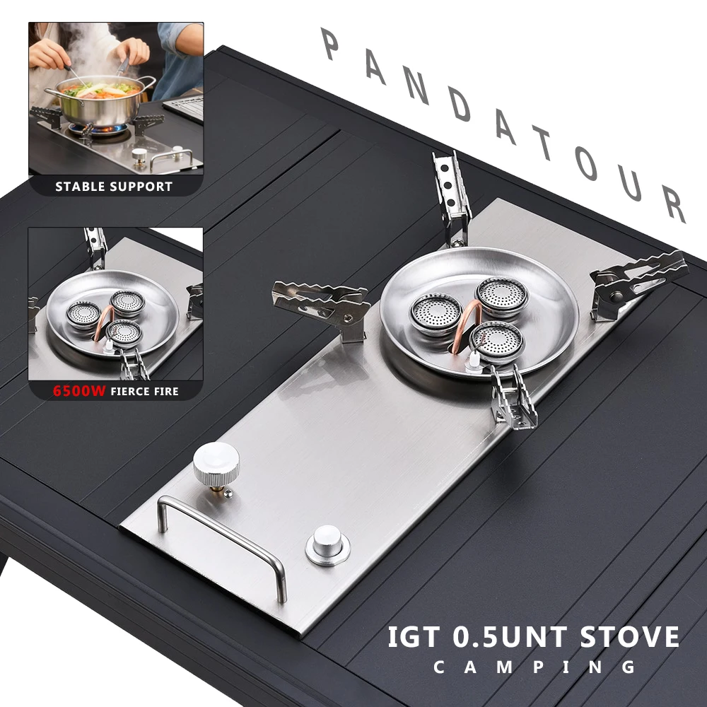 Pandatour Camping IGT 0.5UNT Table Gas Stove Windproof Stainless Steel Folding 6500W High Power Stove Adjustable Burner Cooker