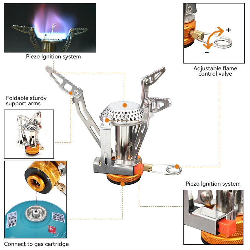 Pandatour Camping One-piece Gas Stove Heater Tourist Burner Foldable Outdoor Picnic Kitchen Equipment Supplies Survival Furnace