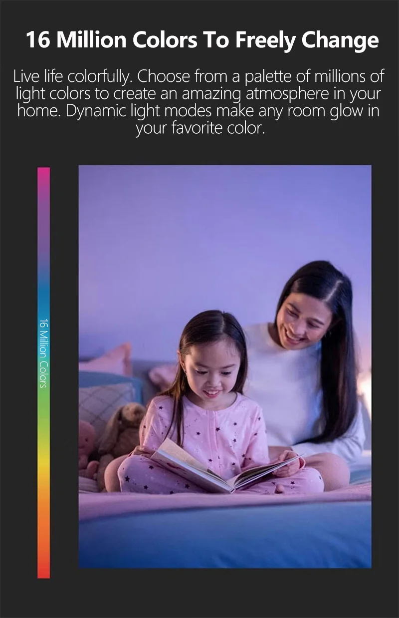 Use the preset wellbeing features in the WiZ app to and enjoy the lighting pattern best suited for your circadian rhythm through the day. WiZ will provides you bright daylight when you need to get energized and focus, and transition smoothly to soft warm white to help you relax and sleep better.