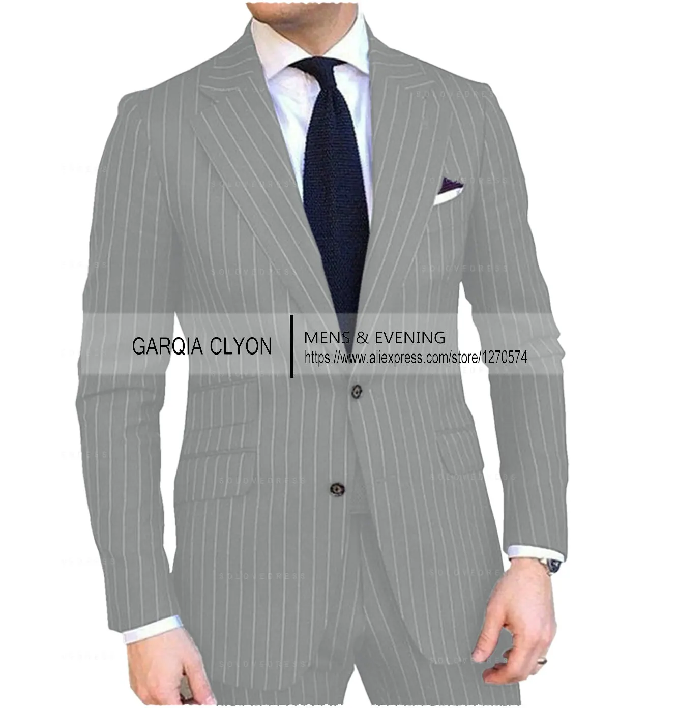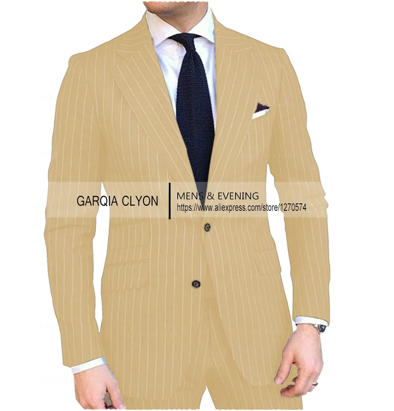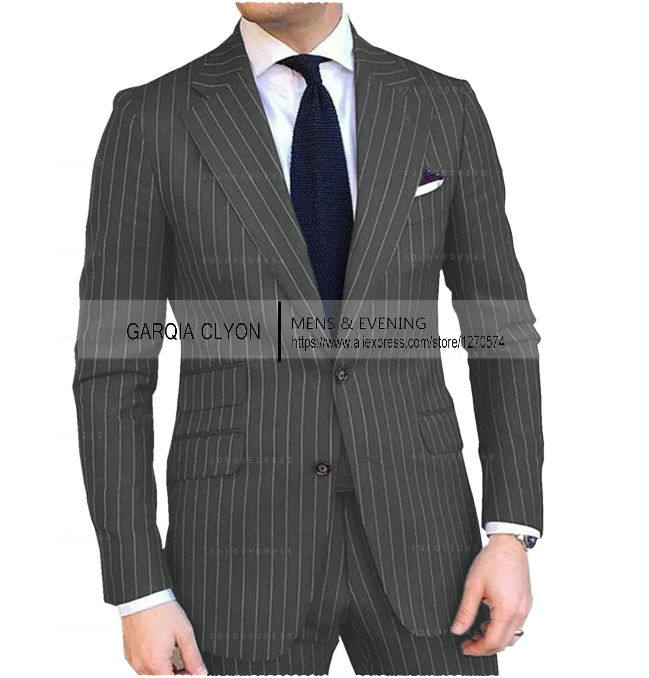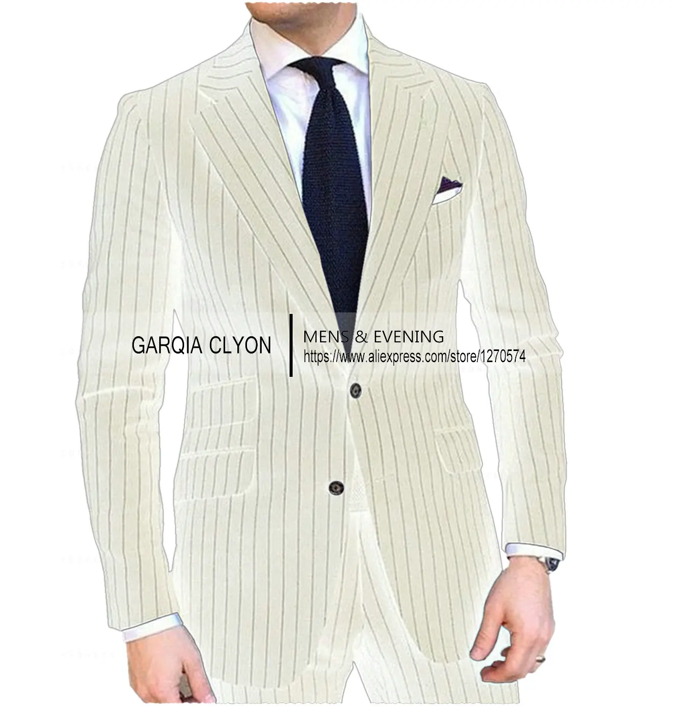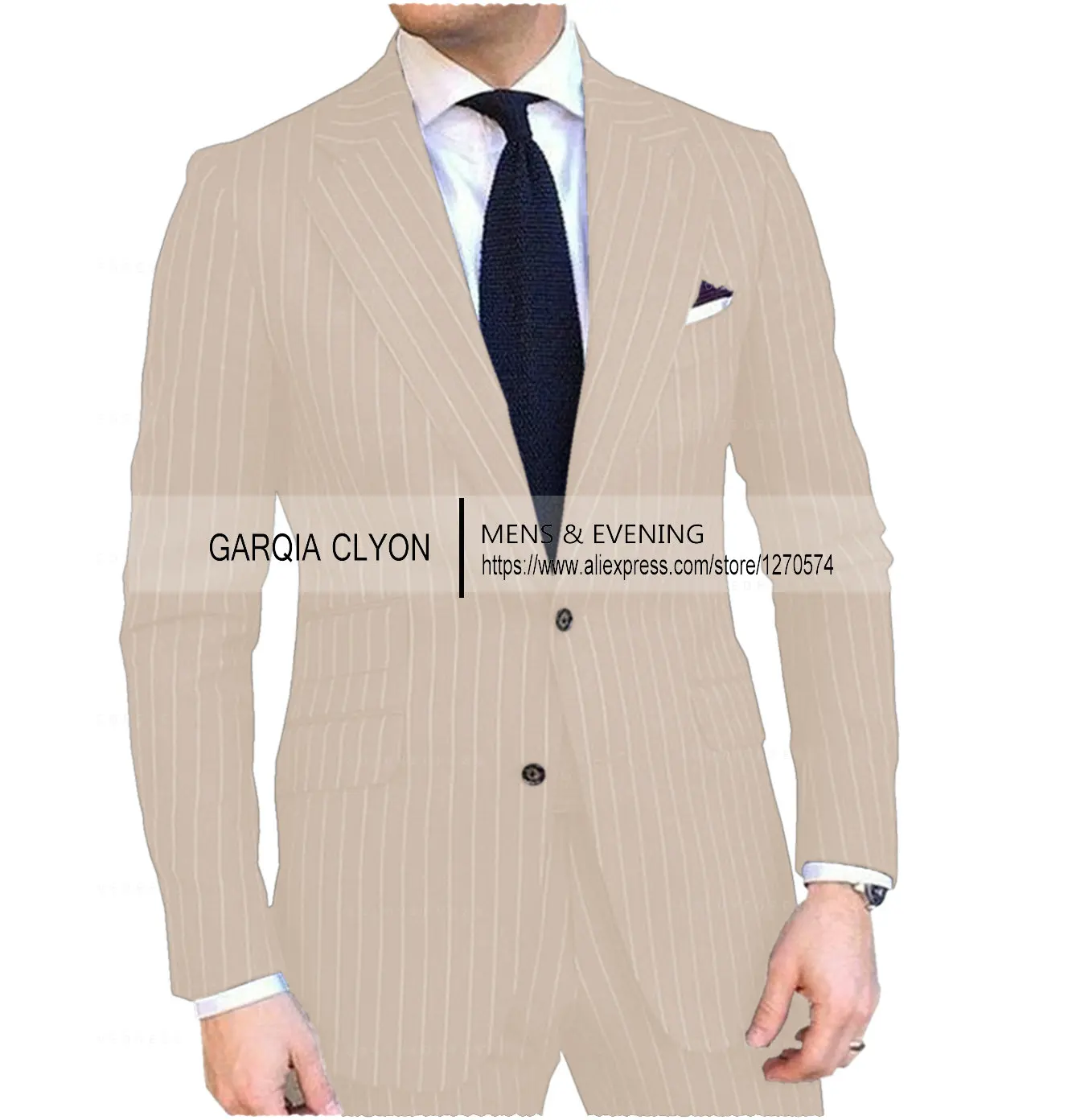 Pinstripe Men’s Suit Tuxedo Notched Lapel Navy Blue Slim Fit for Formal Wedding Striped Male Two Pieces Fashion Business Groom