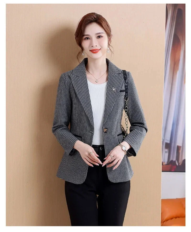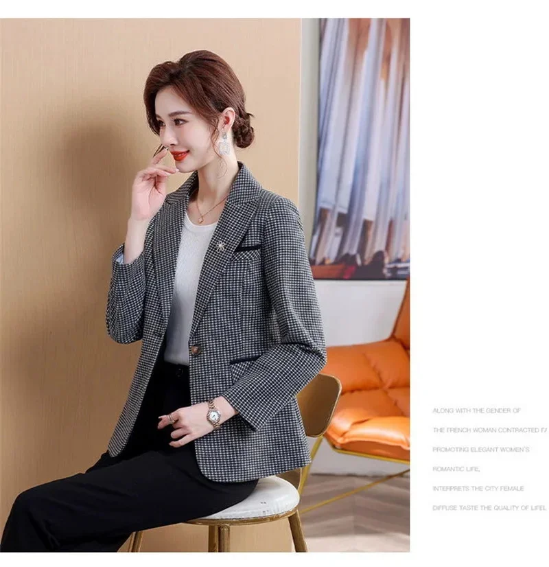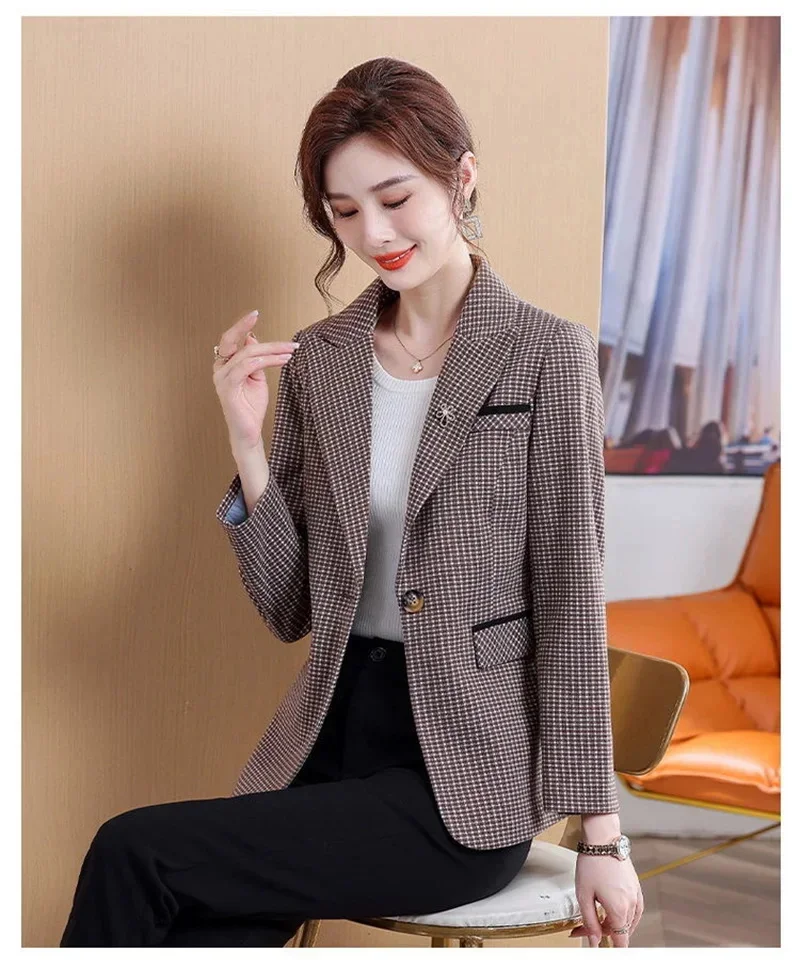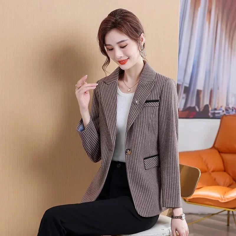 Plaid Suit Women’s Coat Spring Autumn 2026 New Fashion Korean Long Sleeve Blazers Women Jacket Casual Ladies Blazer Outwear Tops
