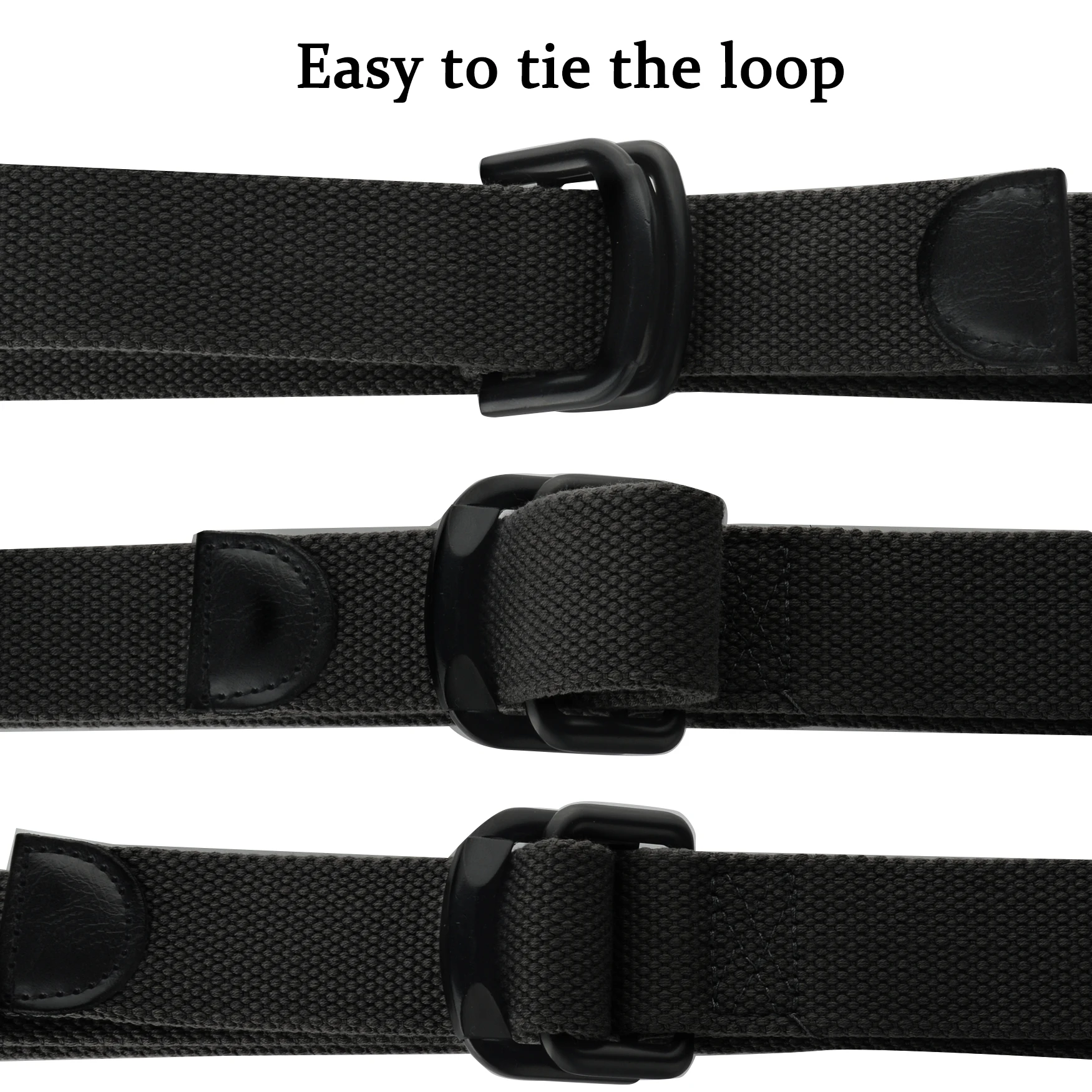 Double ring buckle, easy on and easy off. Full adjustable, utility, clean, and fashion.