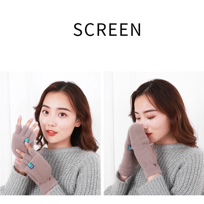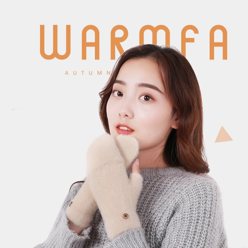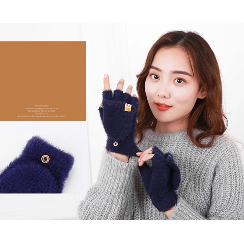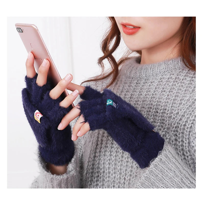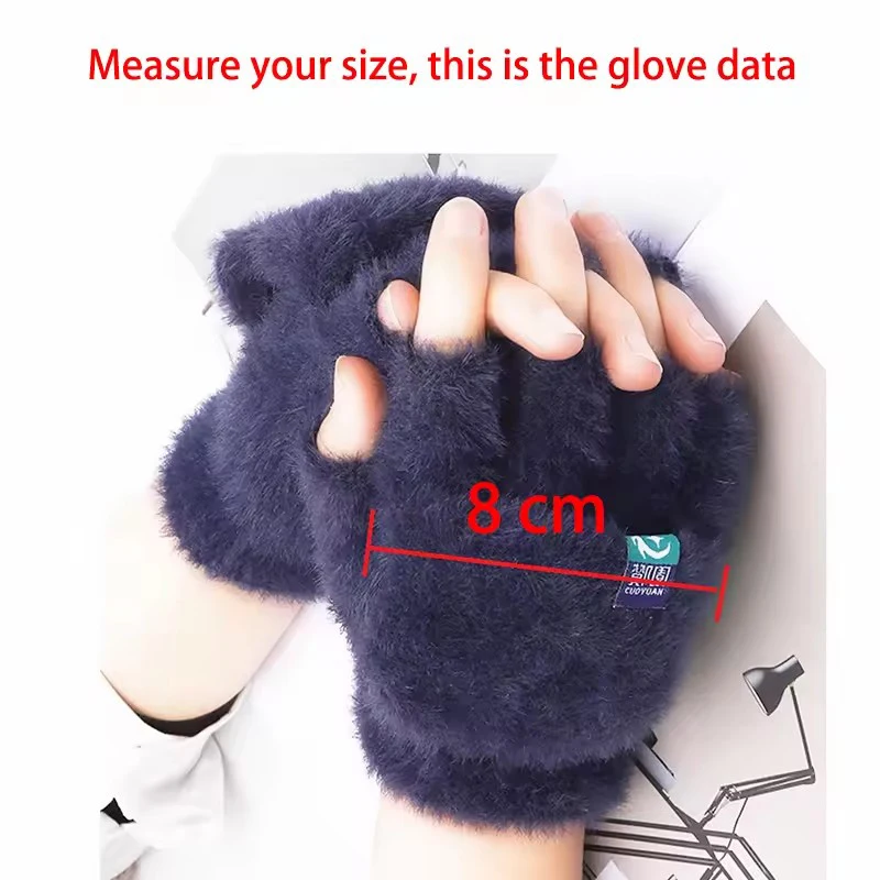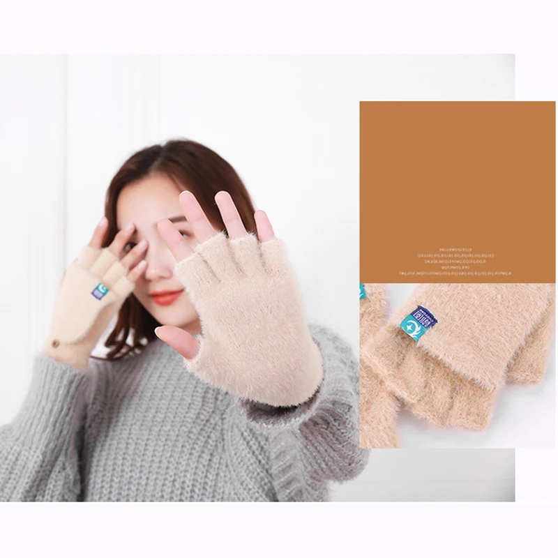 Plush Fingerless Gloves Female Winter Mitten Soft Warm Student Women Flip Gloves Outdoor Write Gloves Thickened Cold Protection