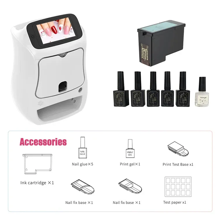 The nail printer can print patterns and designs in multiple colors without the need to replace ink cartridges for each color. This design simplifies operation and saves ink cartridge costs. Such a design also makes the nail printer more suitable for quickly and efficiently achieving colorful nail art designs.