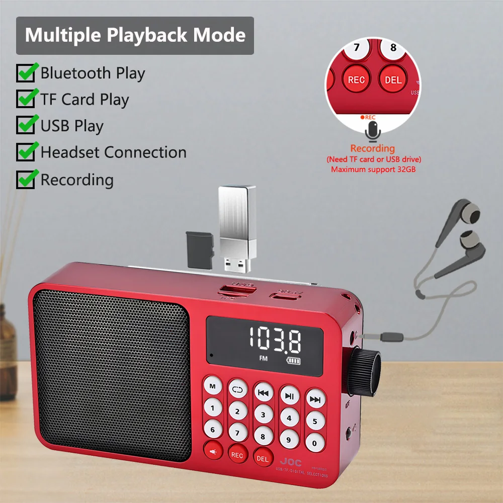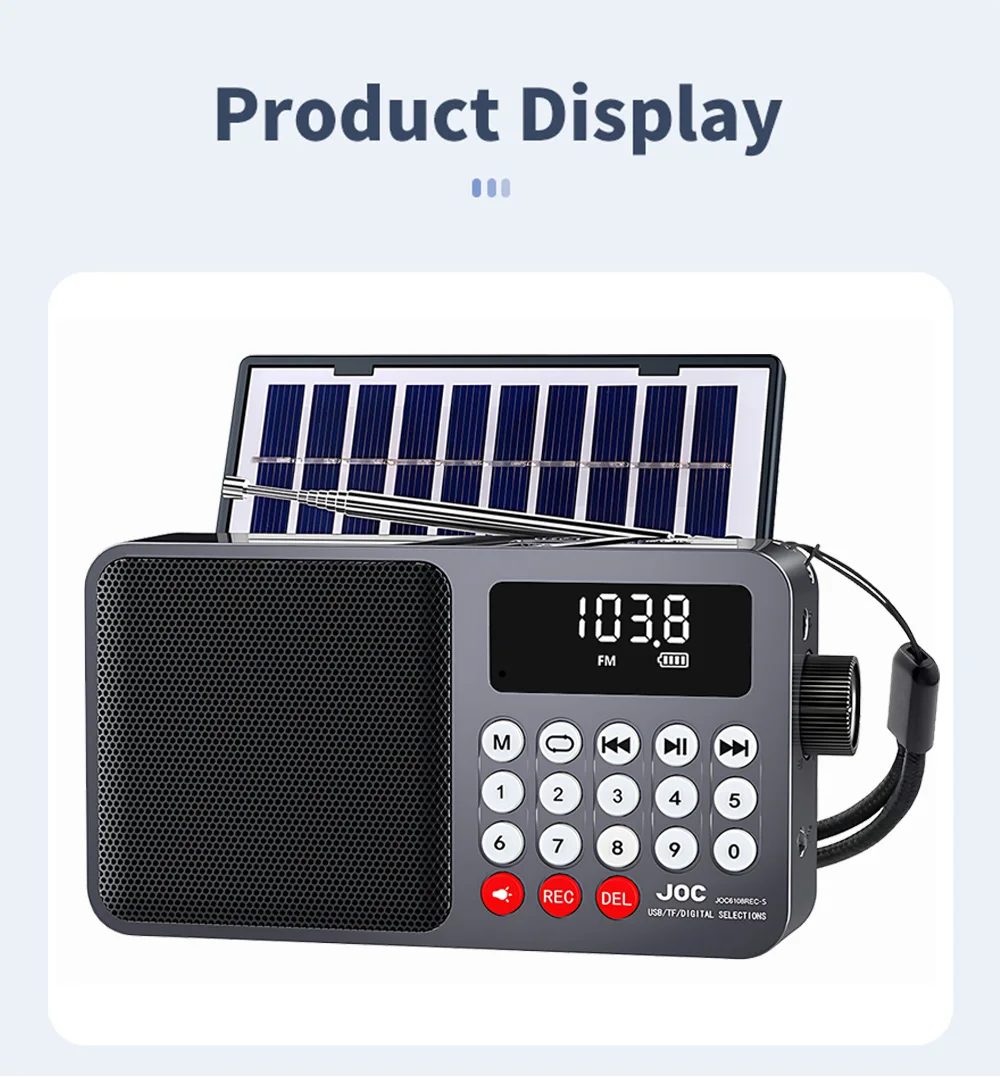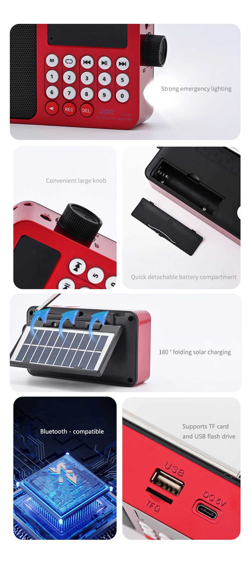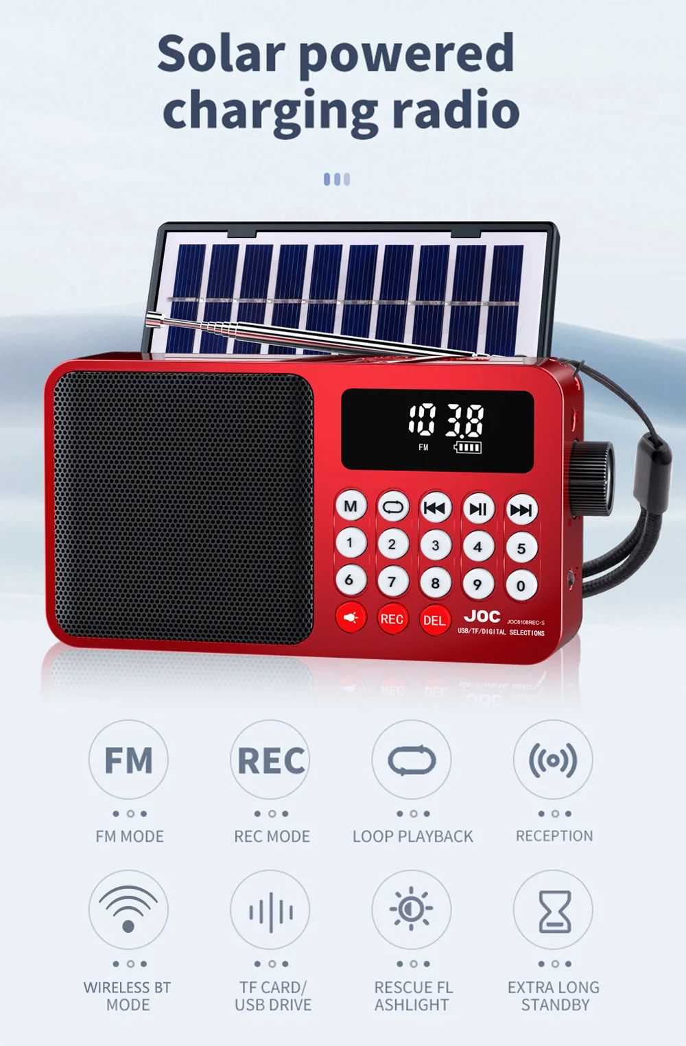 Solar FM Radio Bluetooth Speaker with LED Light support Recording TF Card USB Play Wireless Speaker Radio FM Receiver