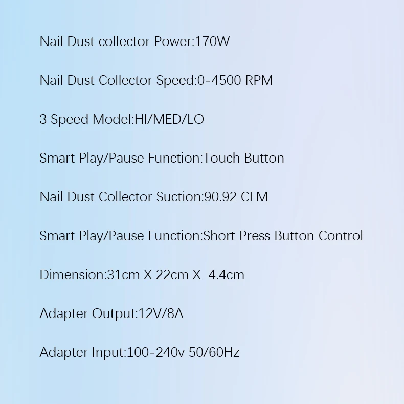 - Product name: Strong Power 170w 2 fans Nail Dust Collector