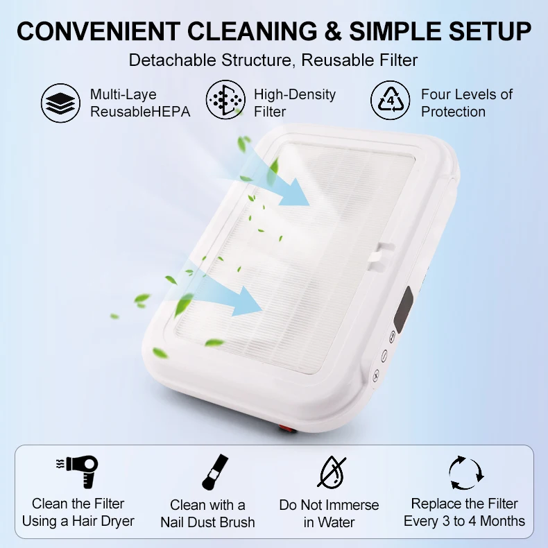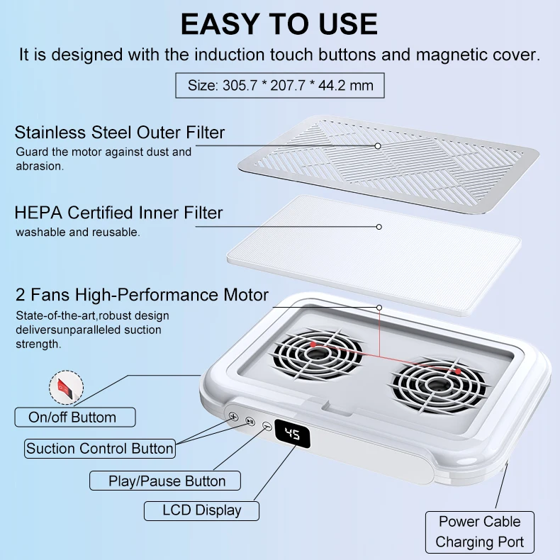 Powerful Manicure Machine Suction 170w 2 Fans Nail Dust Collector Vacuum Cleaner Nail Art Suction with Removable Filter Screen