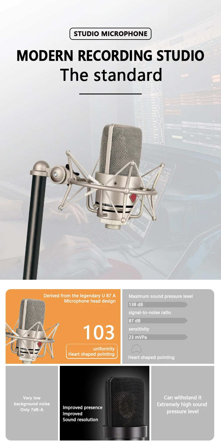 Professional 103 Condenser Microphone Studio For Laptop Computer Mic Karaoke Singing Streaming Podcast Live Wired Mikrofon
