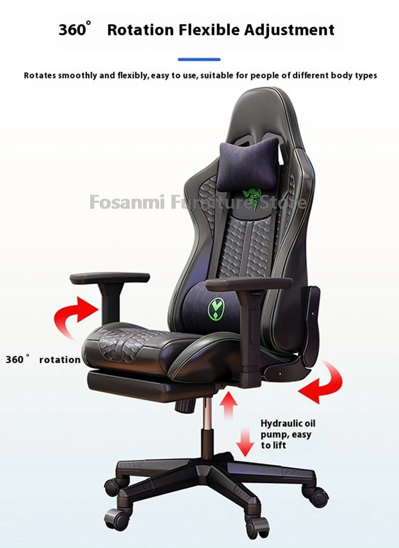 Racing Recline Gaming Chair with Rocking Function Ergonomic Adjustable Home Gamer Computer Chairs Office Leather PC Swivel Chair