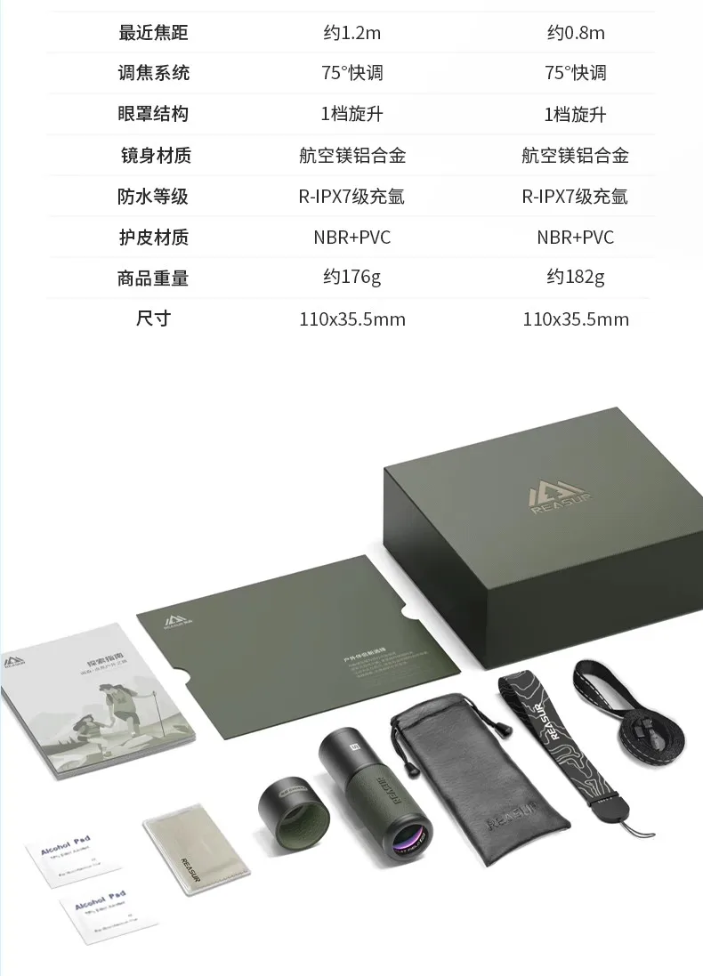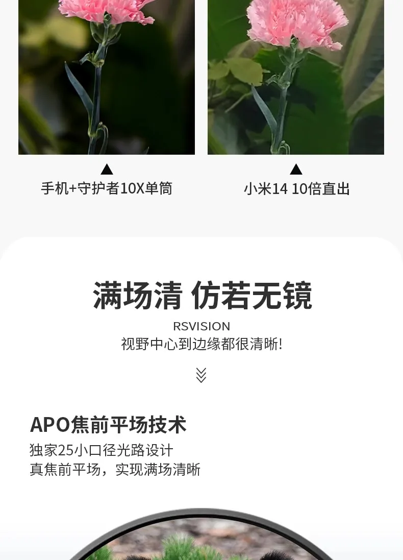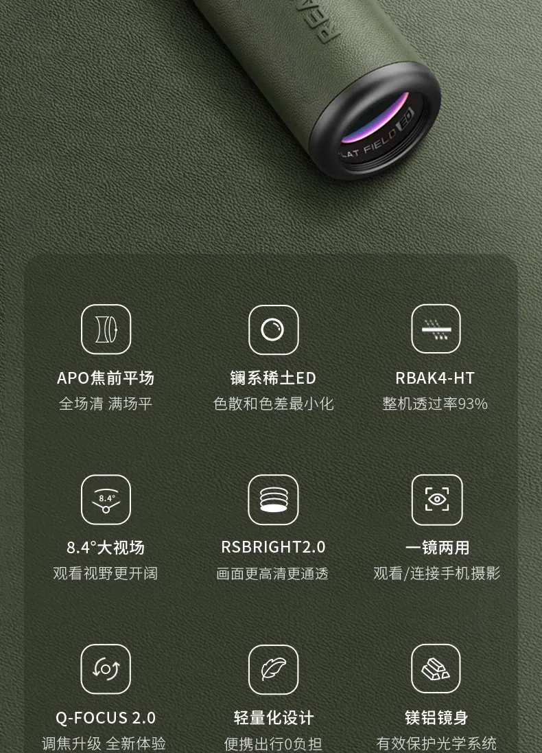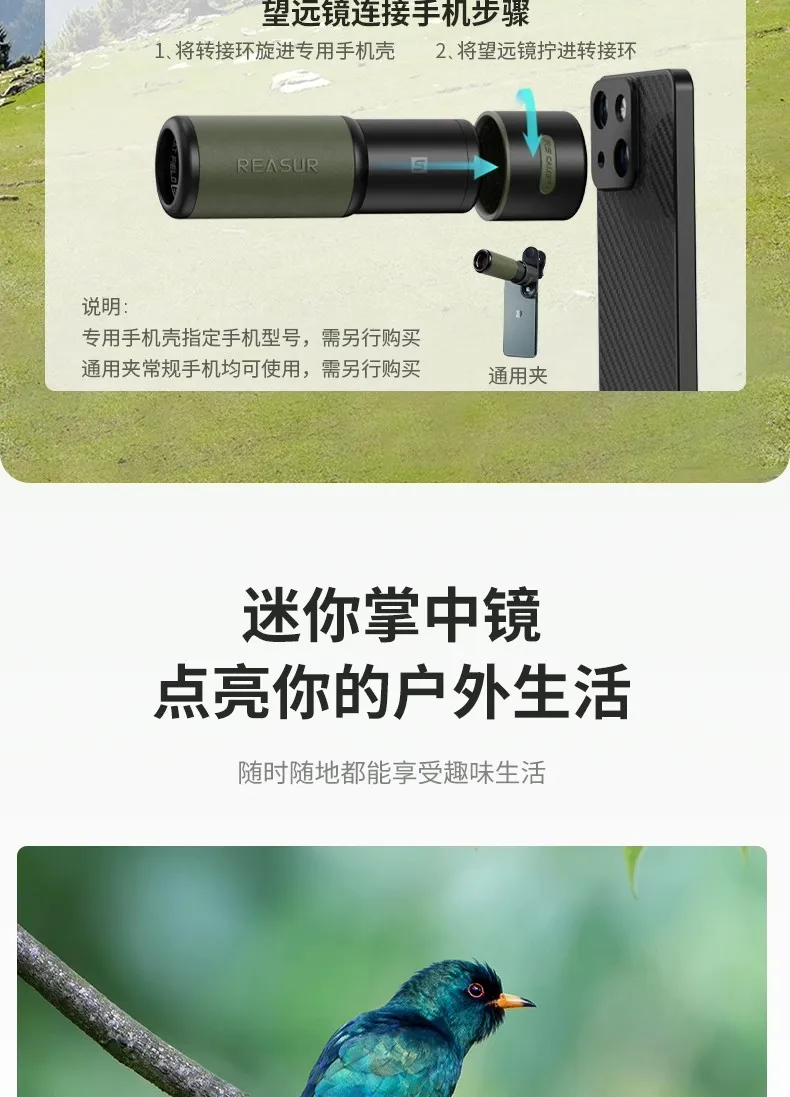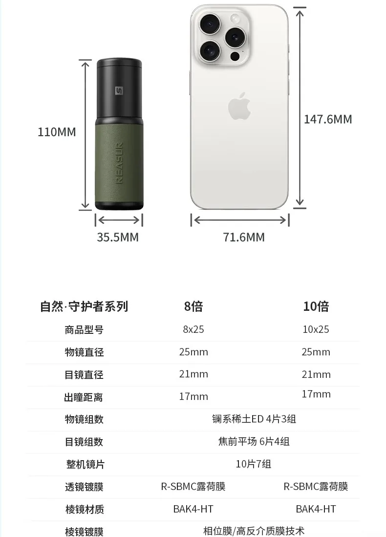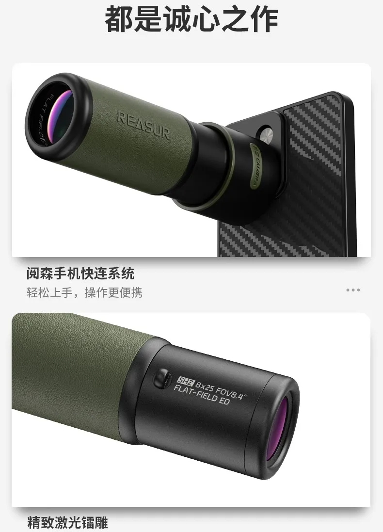 REASUR Guardian Monocular 8X25APO, front-focusing flat lanthanide ED lens, telephoto photography lens for mobile phones