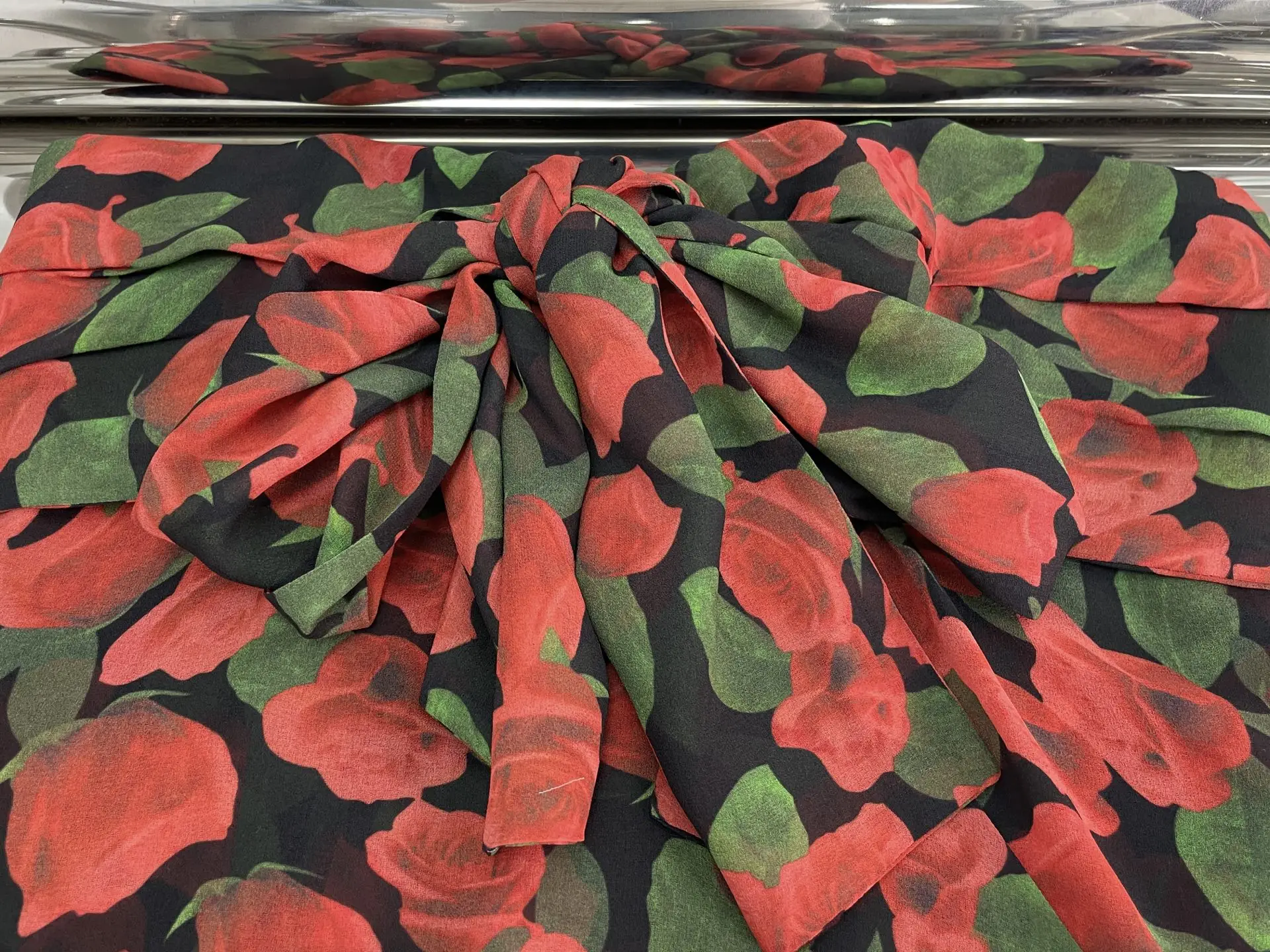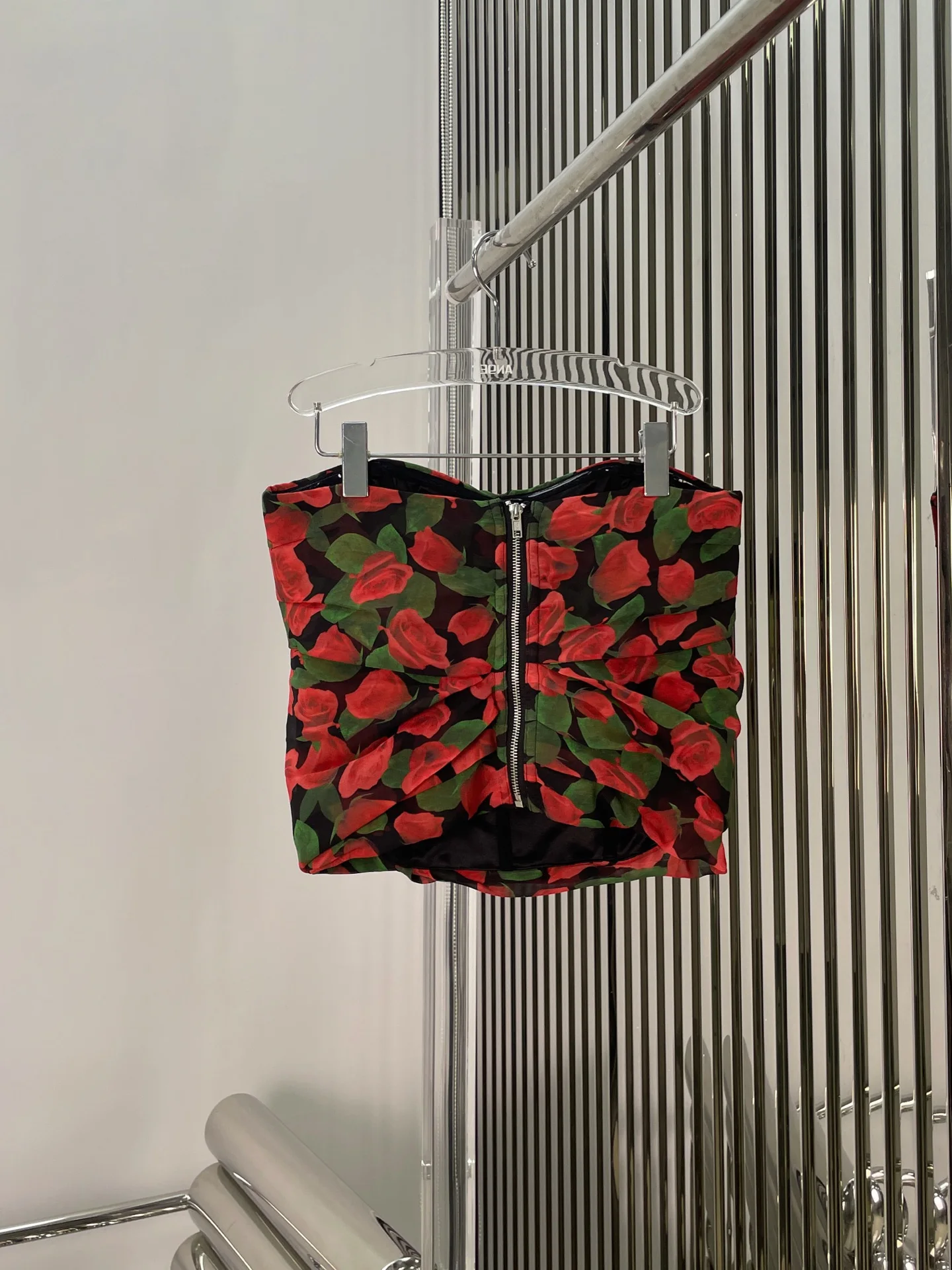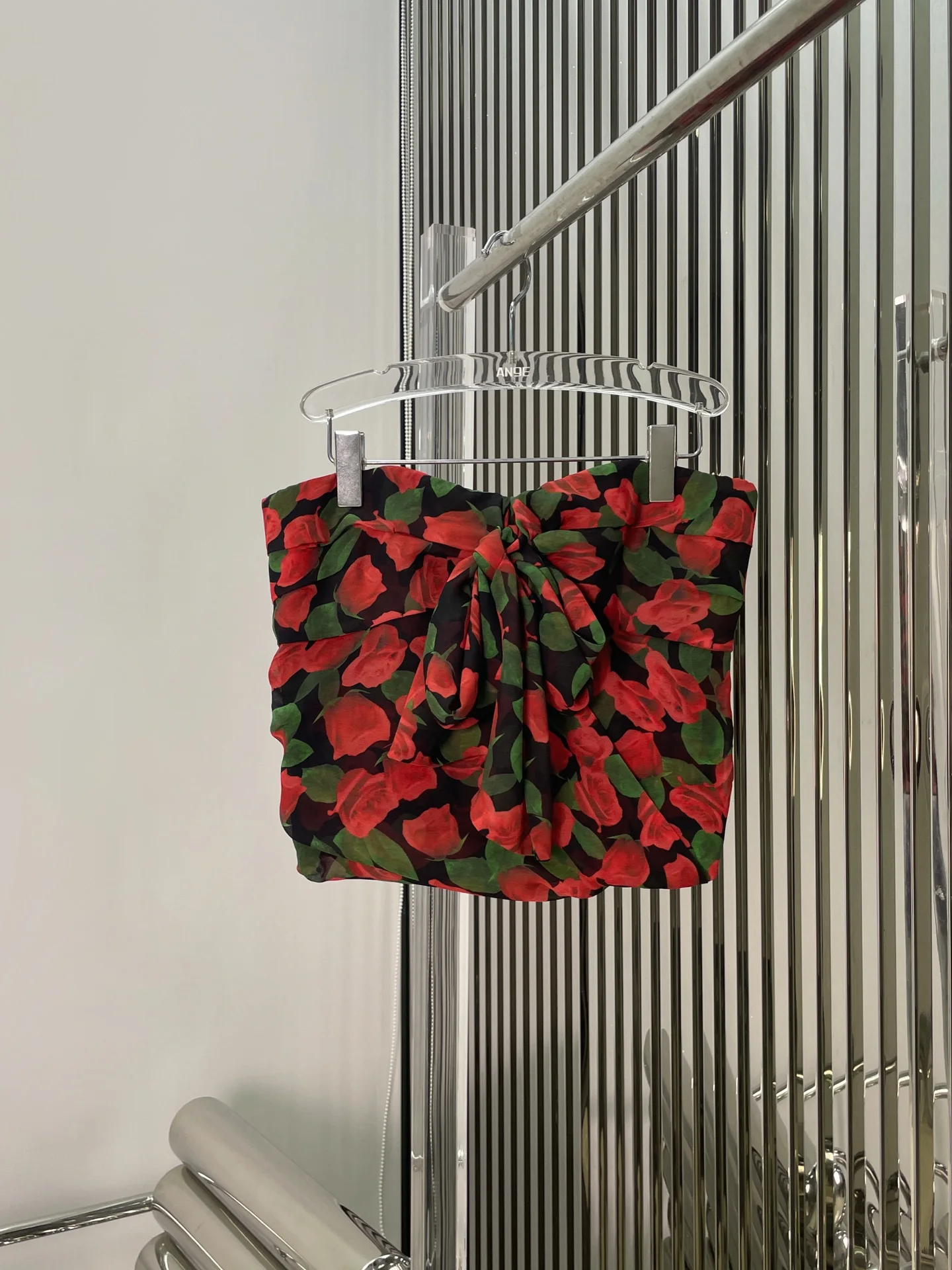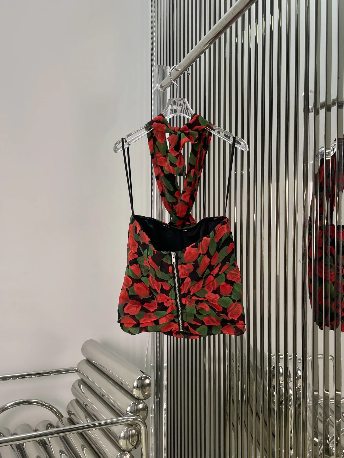 Red rose printed cross-neck lace-up vest 2025 summer slim short pure and stylish off-the-shoulder top