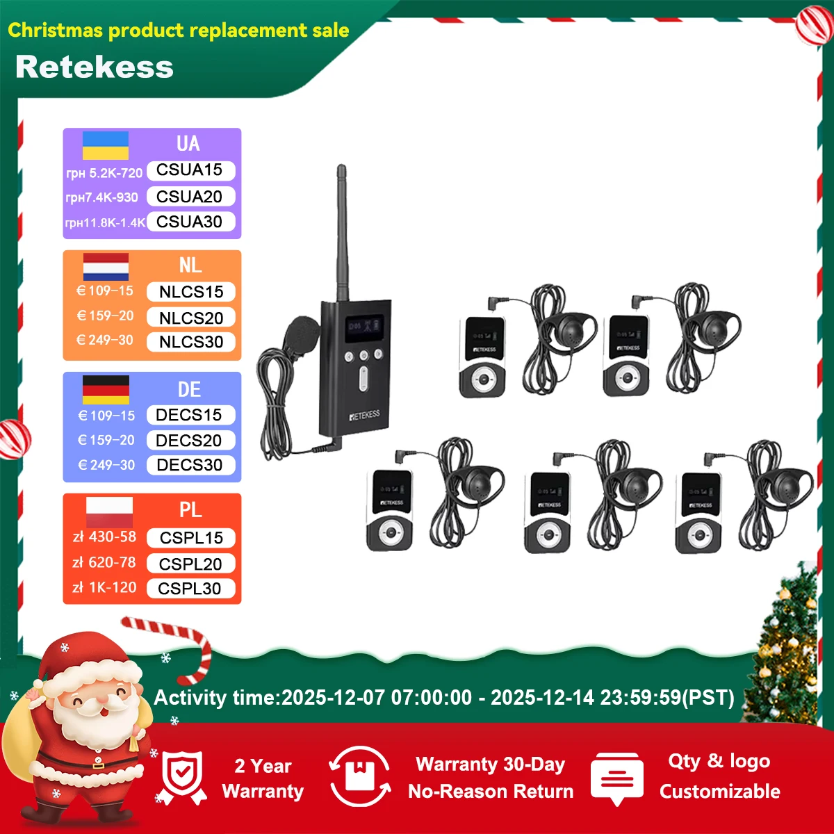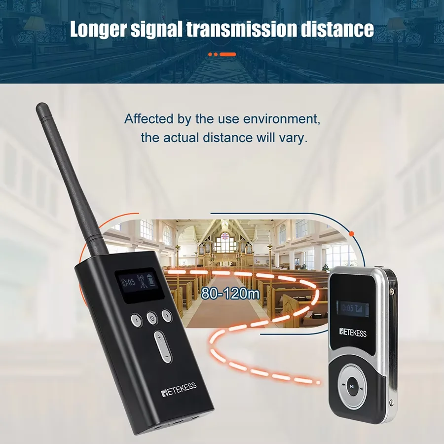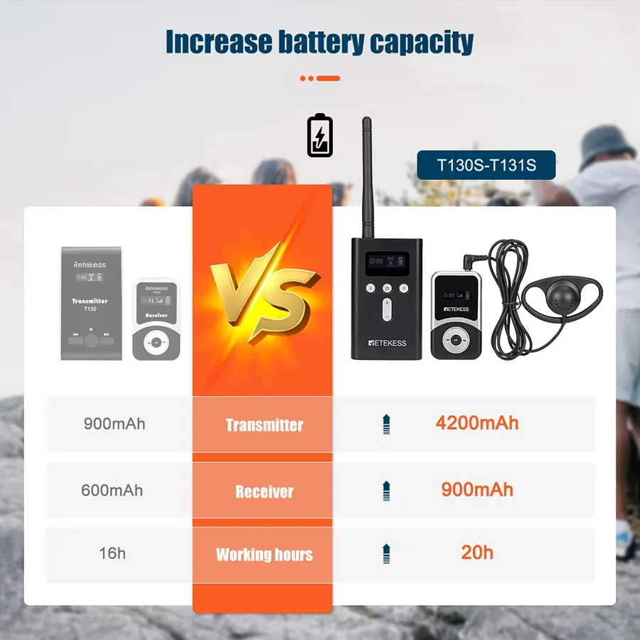 Retekess T130S Tour Guide System Audio Guide, 2nd Gen T130 Mic Long Standby Transmitter Receivers Radio Guide For Tour Training