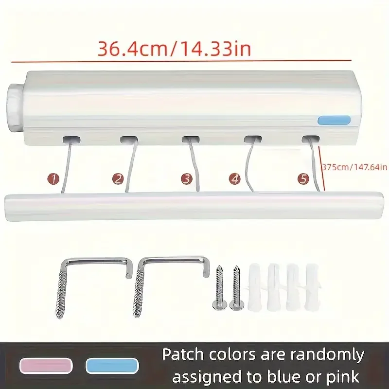 Retractable Clothes Drying Rope 3.75m Clothesline 5 Wires Wall Mounted Shrinkable Plastic Laundry Hanger Indoor Drying Rack