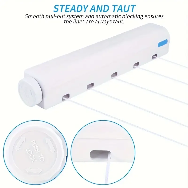 4. Compact retractable clothesline provides plenty of room for your laundry.