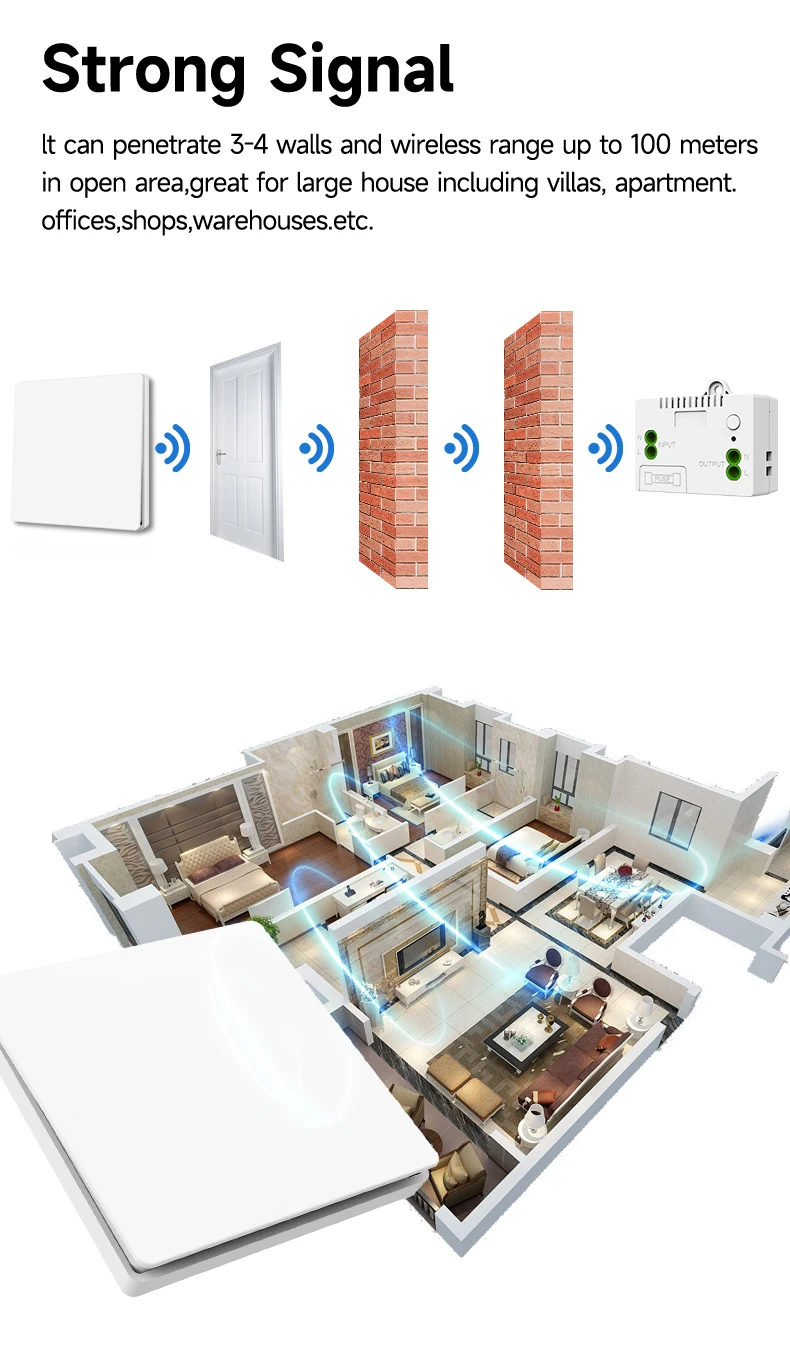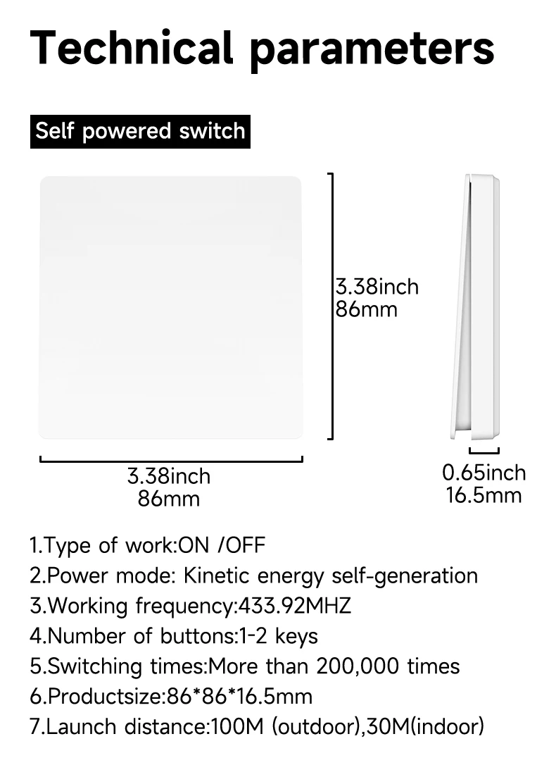 Self-Powered Wireless Switch Kit | Battery-Free & Wire-Free | Home/Commercial