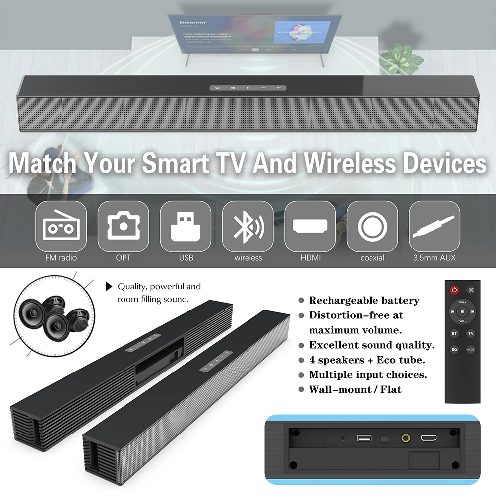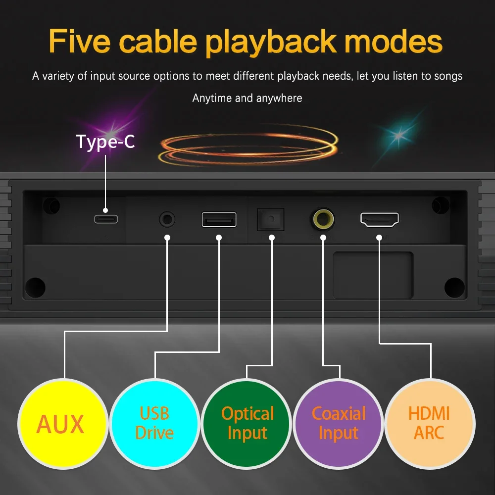 - Communication: AUX,Optical Input,Coaxial Input,USB,Bluetooth,RCA,HDMI-Compatible,WireLess