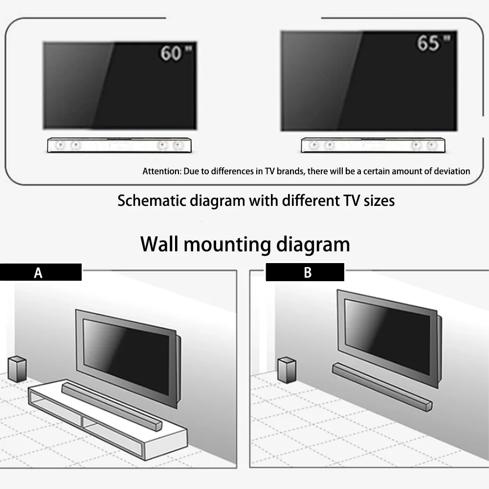 Rsionch Home Theater TV Speakers Wall-mount Speaker Wireless Soundbar FM Radio TV Optical Speaker for TVs Smartphone USB input