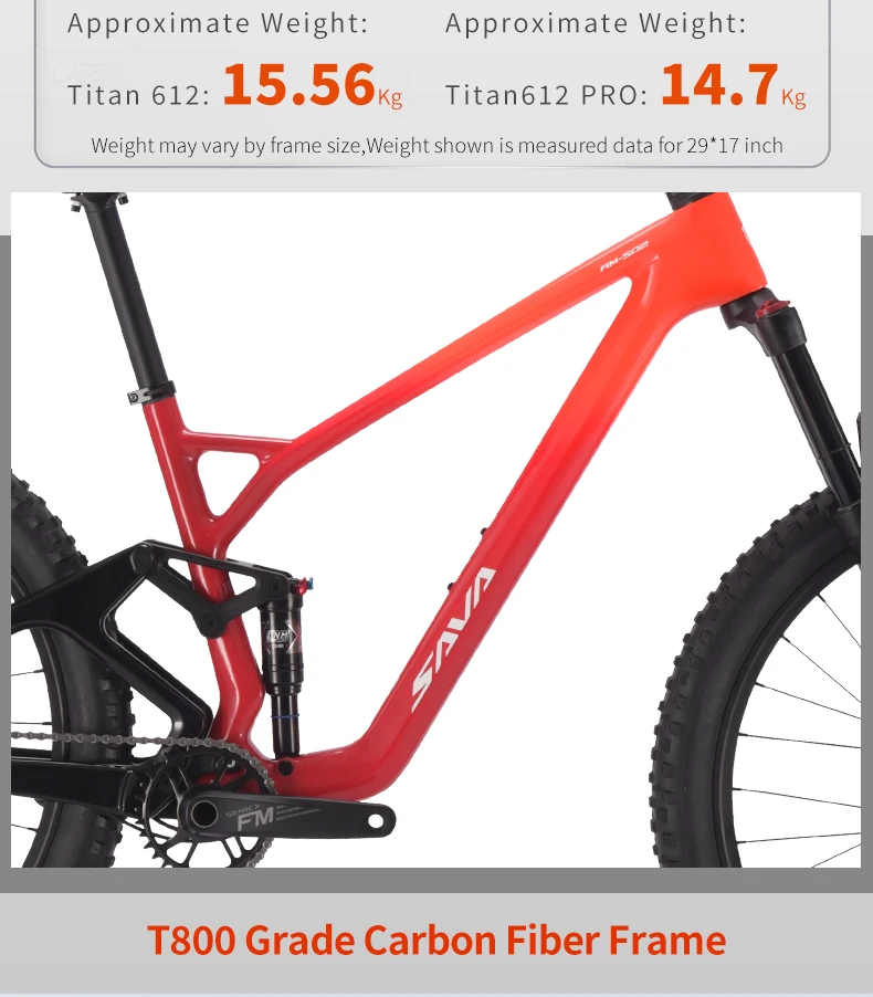SAVA 612 pro Carbon Fiber Mountain Bike 12 Speed Suspension Cross-Country Class MTB with SHIMAN0 DEORE M6100 Kit