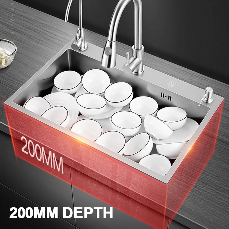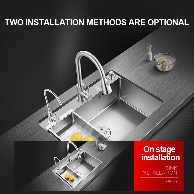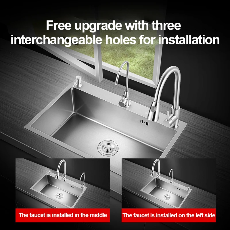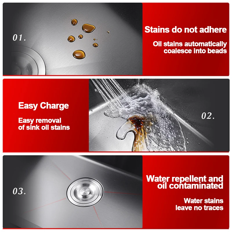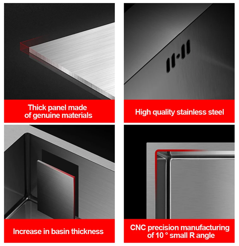 2. Single bowl sink Used Ultra-quiet design, with thicker and softer rubber noise reduction pads. The anti-condensation thick noise reduction coating absorbs sound from the source and isolates the condensation water.