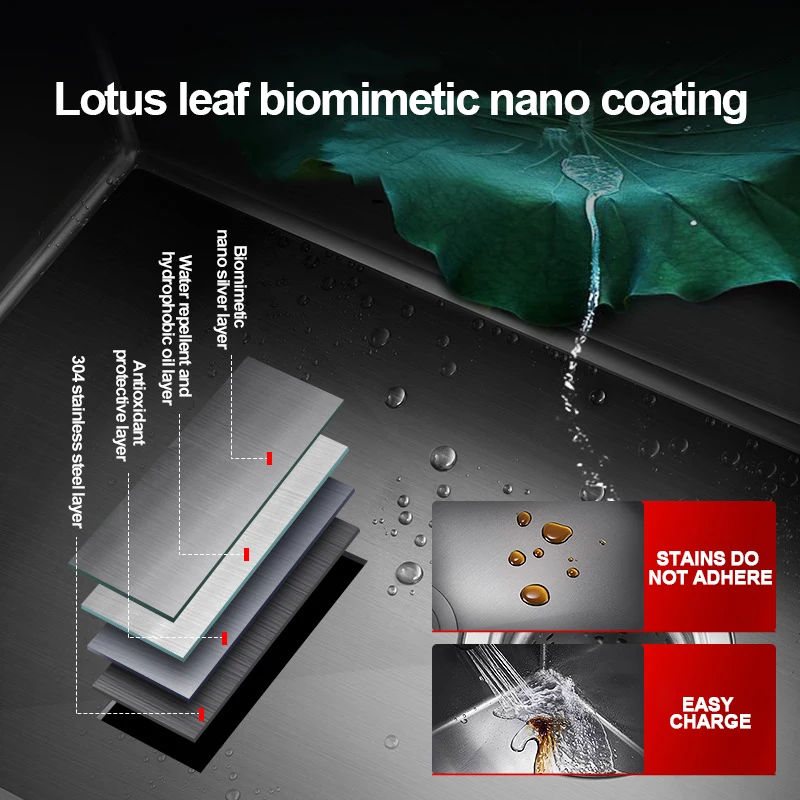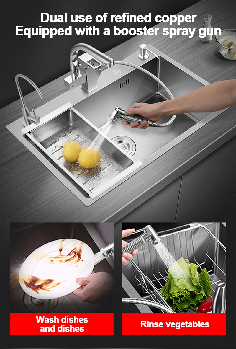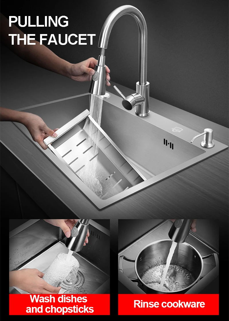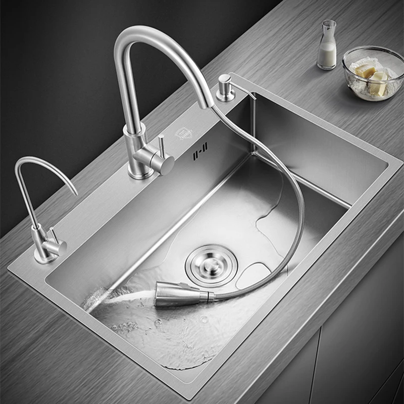 2. Single bowl sink Used Ultra-quiet design, with thicker and softer rubber noise reduction pads. The anti-condensation thick noise reduction coating absorbs sound from the source and isolates the condensation water.
