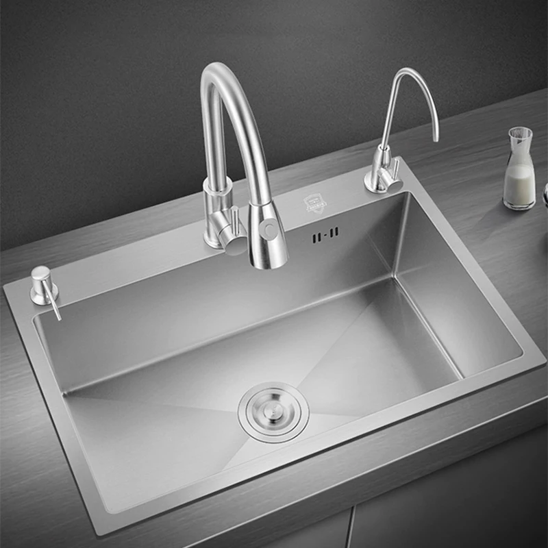 Silver Kitchen Sink 304 Stainless Steel sinks Above Counter or Undermount Installation Single Basin Bar Sink Washing Basin