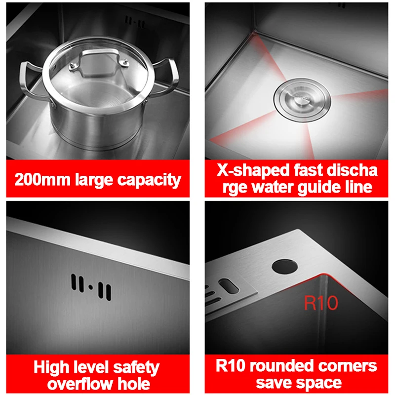 6.Space-Saving R-10 Rounded Corner Design – Small-radius corners maximize usable sink space and are easier to clean.