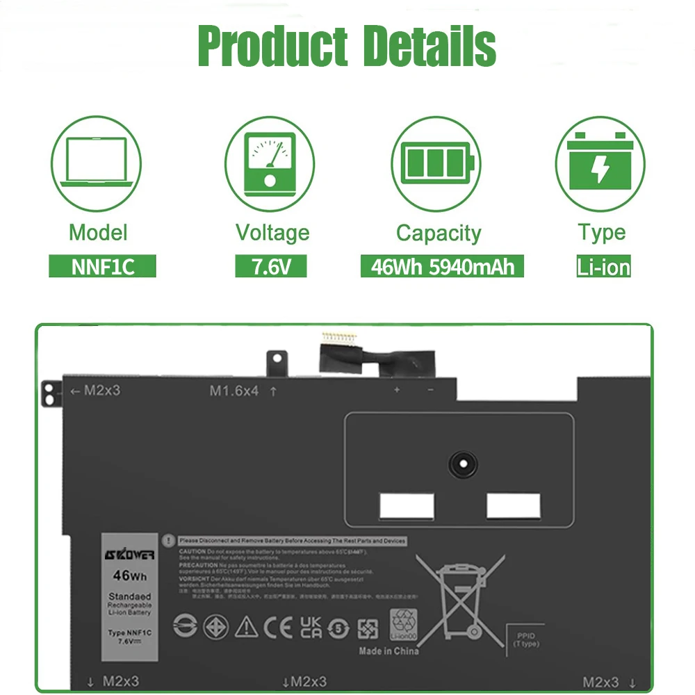 SKOWER 46Wh NNF1C Laptop battery for dell xps 13 9365 2 in 1 Series P71G P71G001