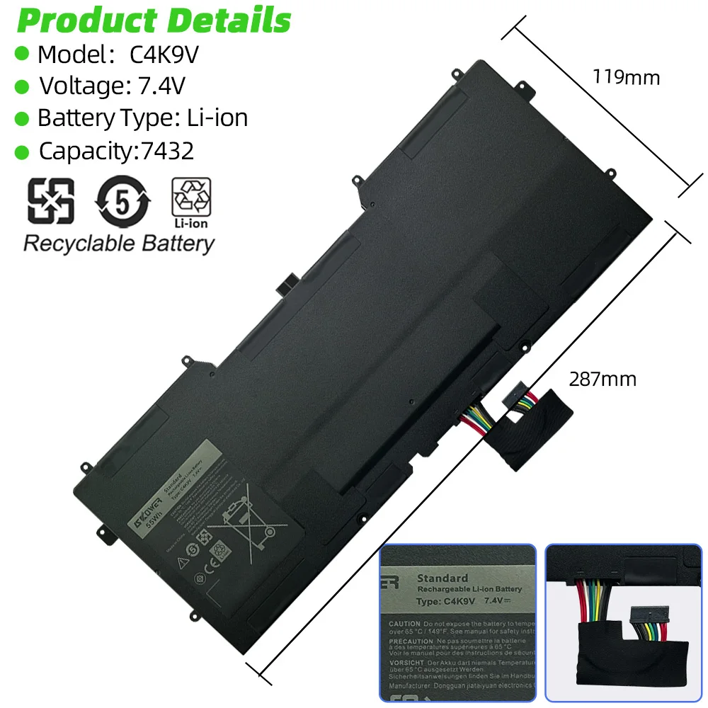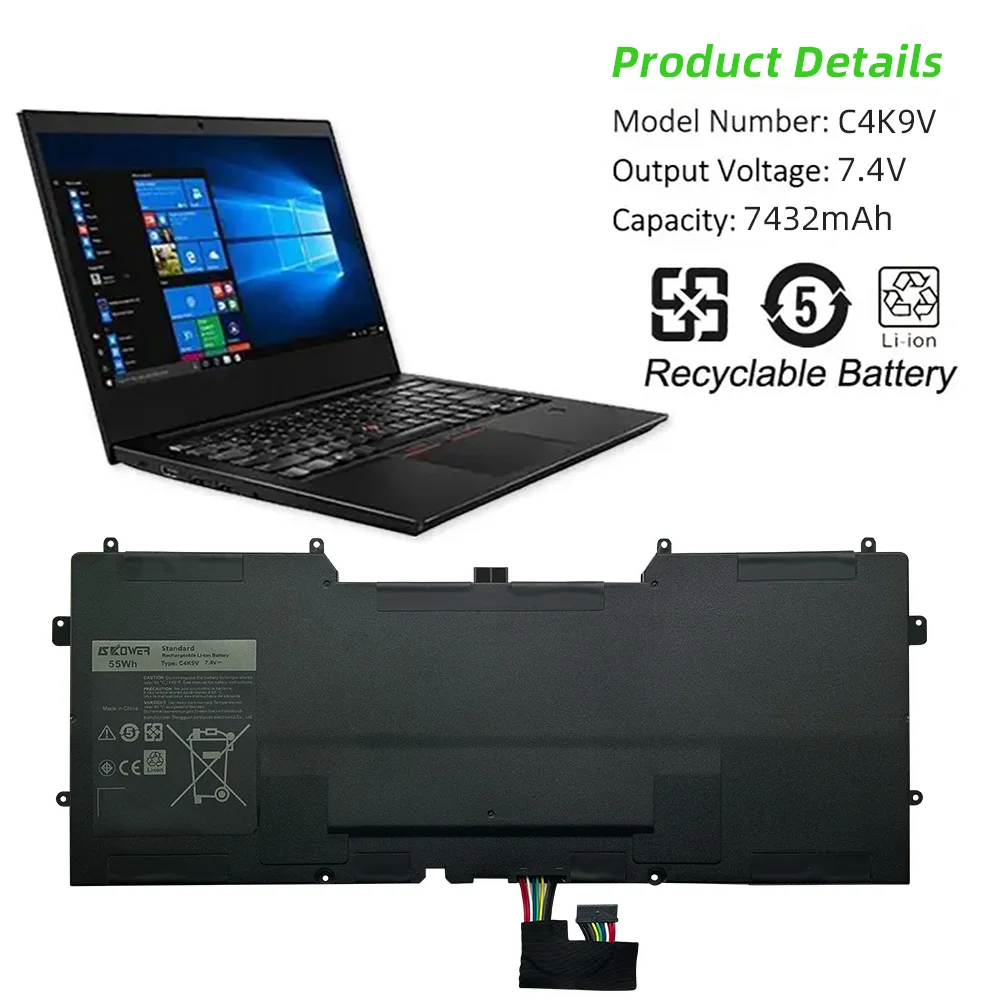 SKOWER 55Wh C4K9V Laptop Battery For Dell xps 12 L221X 13 9333 9Q33 L321X L322X Replacement Y9N00