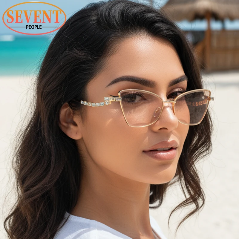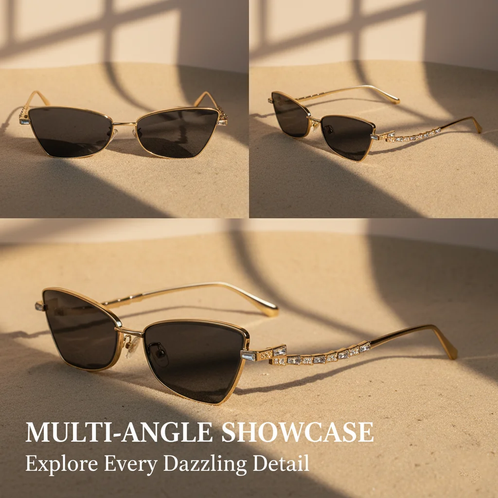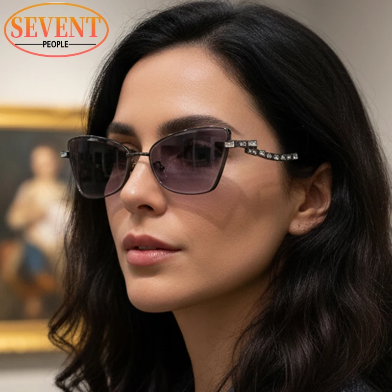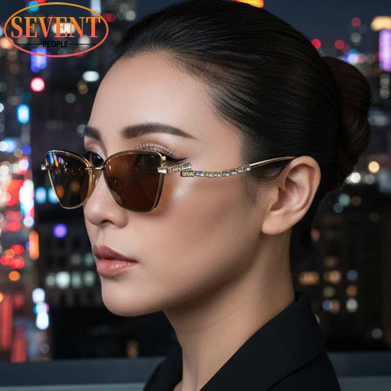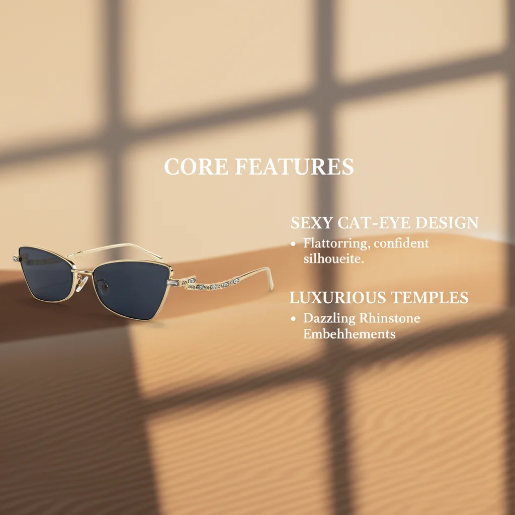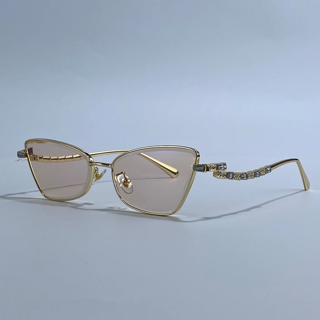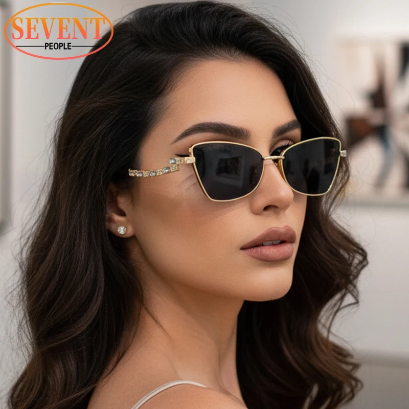 Small Frame Sexy Cat Eye Sunglasses Women 2025 Luxury Brand Trendy Metal Rhinestones Sun Glasses For Ladies Outdoor Shades UV400