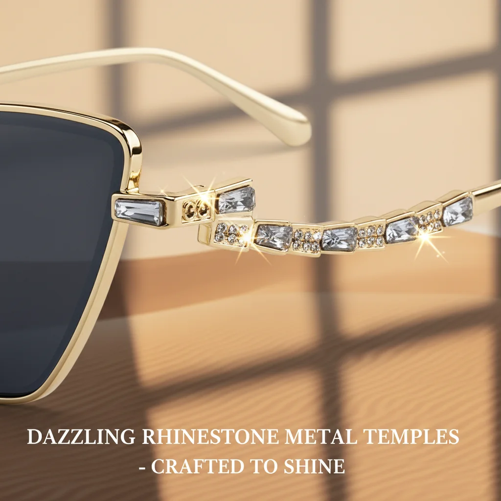 The metal rhinestones embellishment adds a sparkling touch, enhancing the trendy and fashionable appeal of these sunglasses.