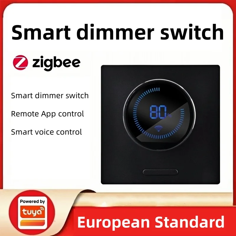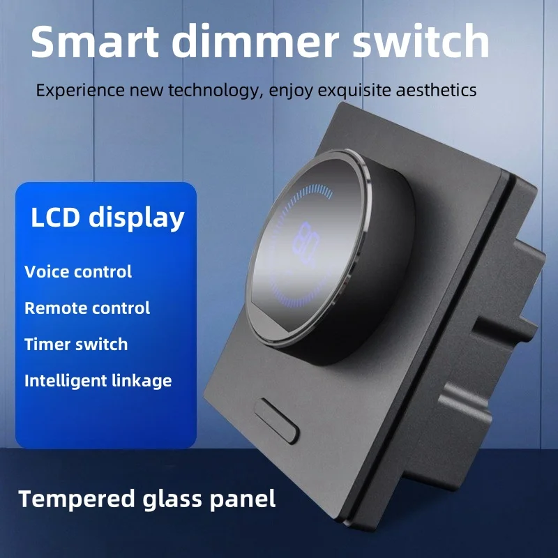 Smart Dimmer Switch Panel Zigbee Tuya 86 Type Knob Light Brightness Adjustment Voice Control App Remote Control LCD Display