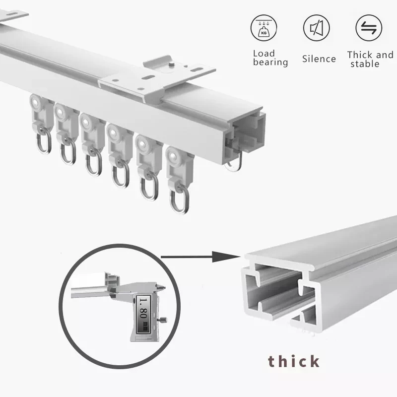 2.The max loadbearing depens on the length of curtain ,for 4m Straight track/rail ,can load 75kg;8m Straight track/rail ,can load 45kg.