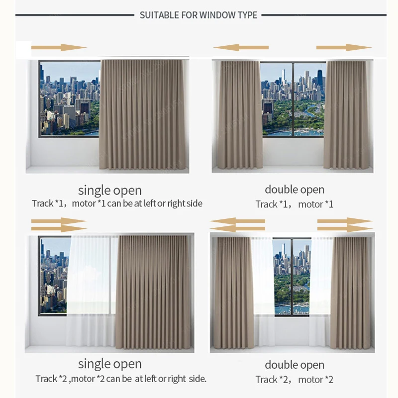 3.Track (ship as Ceiling Mounted, straight track, Middle Open in default, If the buyer does not leave a message and does not