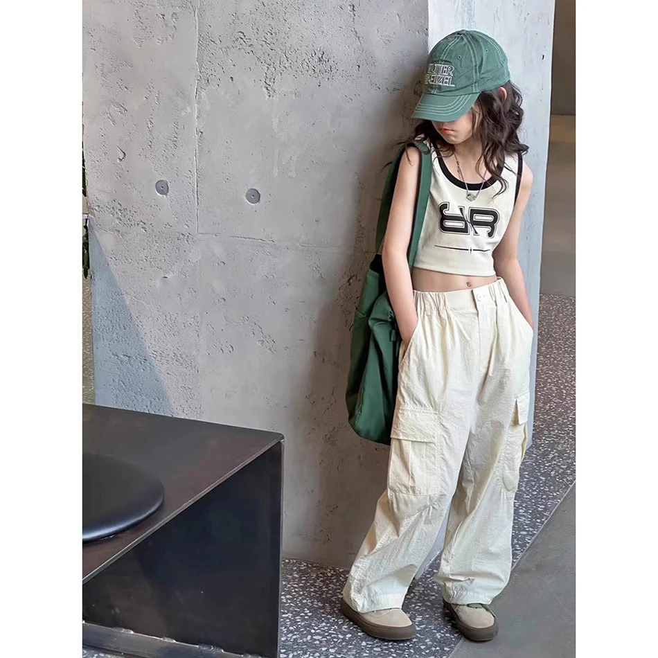 Soft and Comfortable Children Girls Loose-Fit Mosquito-Proof Pants Cargo Pants Multiple Pockets Fun and Functionality Kids Pants