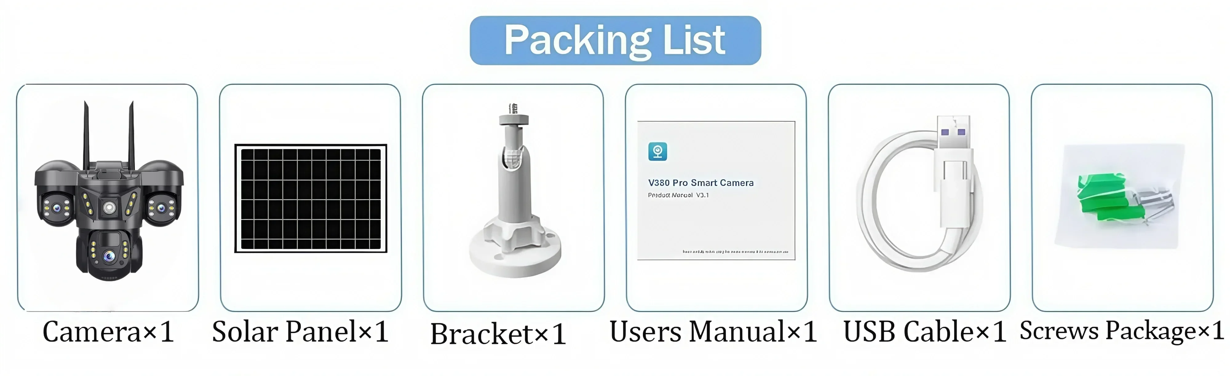 1x Type-c USB Cable , 2x Screws Package, 1x User Manual,1x Solar panel, 1x Solar panel Holder