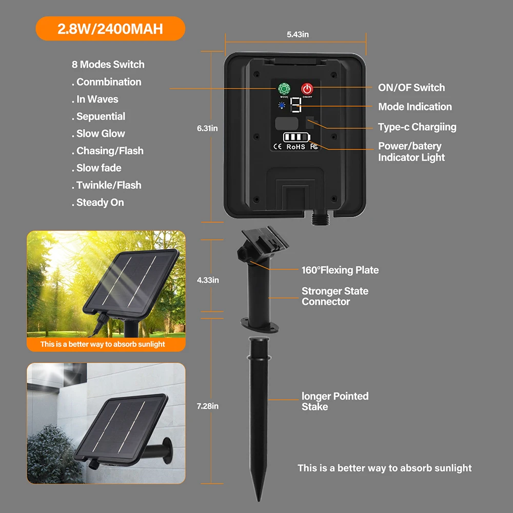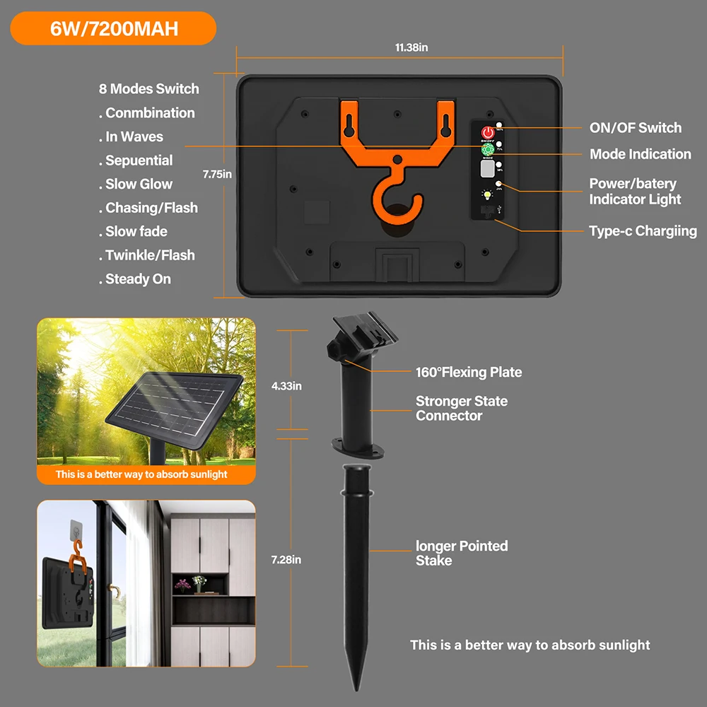 [Built in high-efficiency solar panels]: adopting environmentally friendly design, no need for complex wiring or external power supply, suitable for various indoor and outdoor scenarios, easy installation, and providing stable self powered lighting.