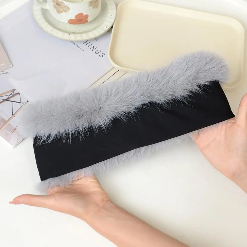 Solid Color Plush Headband Elastic Faux Fur Headband Set Black Mongolian Top Hat Circle Women’s Fur Headband Hair Accessory