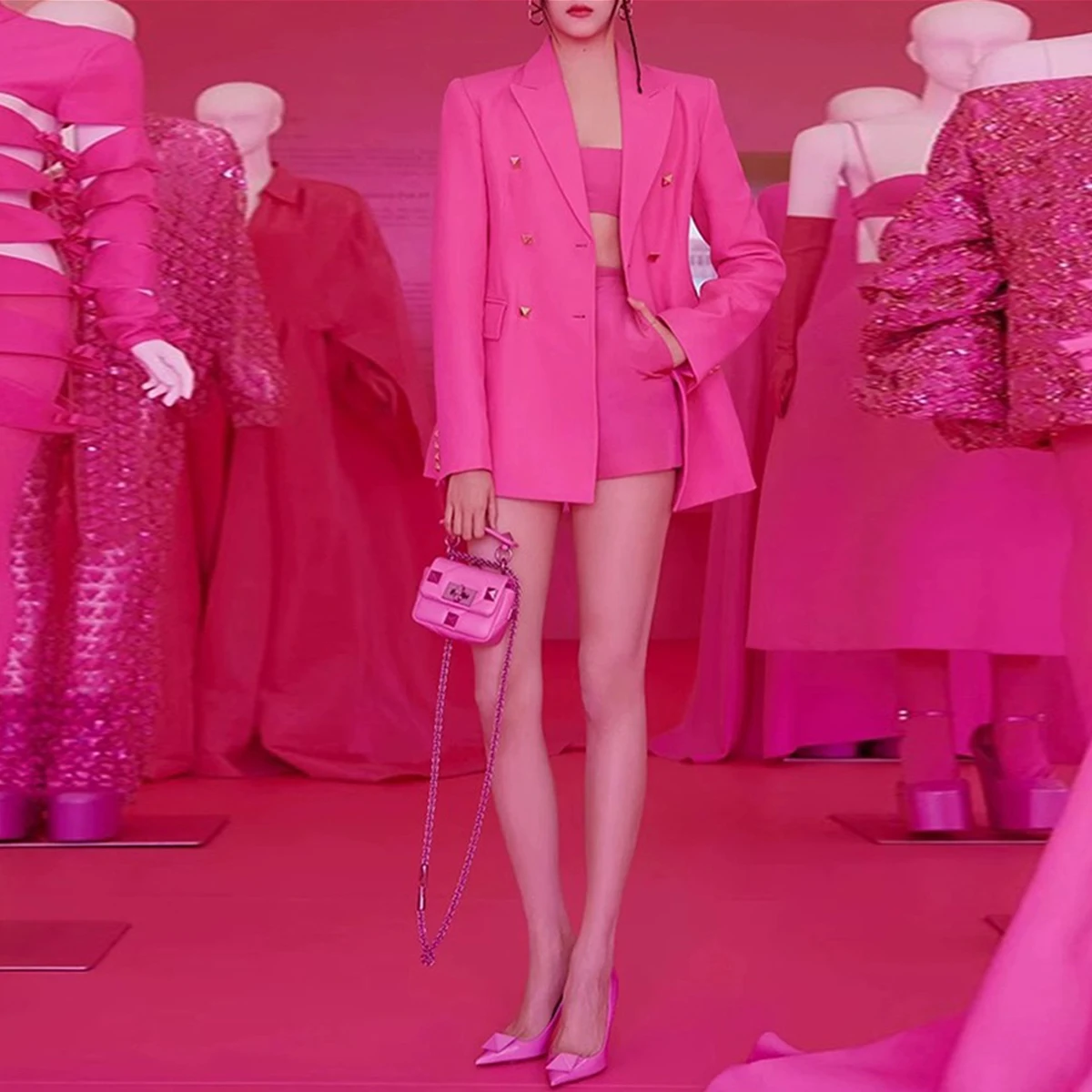 Spot 2024 Spring And Autumn New High Quality Temperament Commuting Fashion Professional Ladies Suits Suspenders Three-piece Set