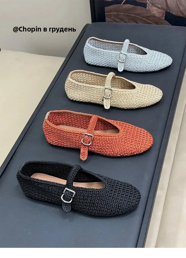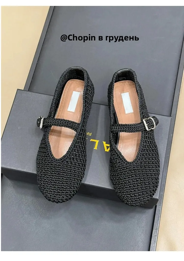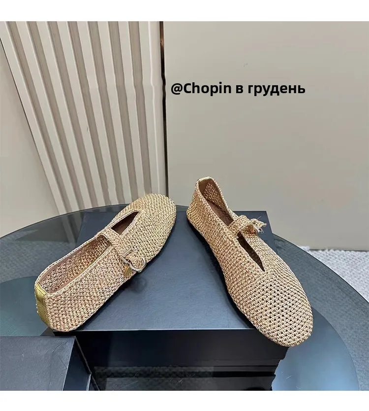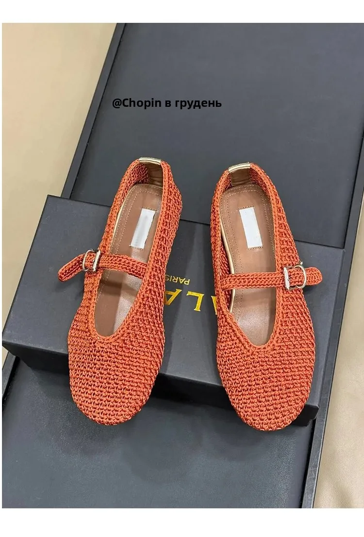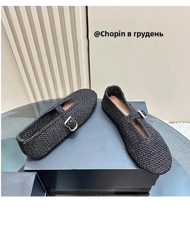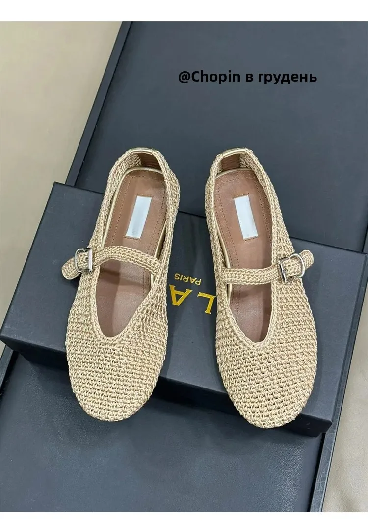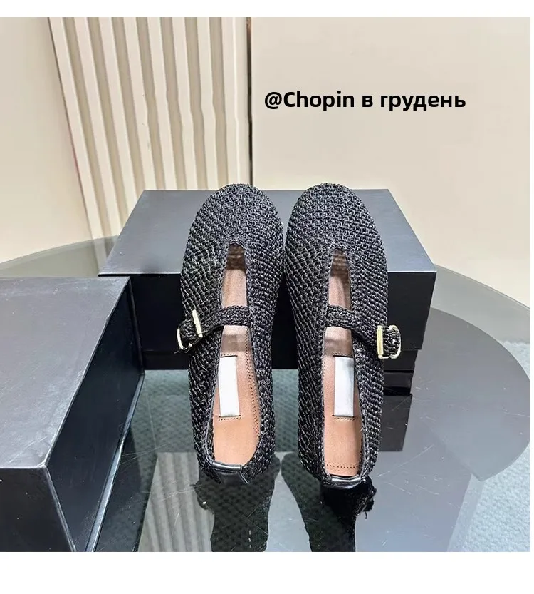 Spring New Sle Woven Leather Mary Jane Flat Bot Women’s oes Casual Low Heel Rubber Outsole round Toe Slip-On oes