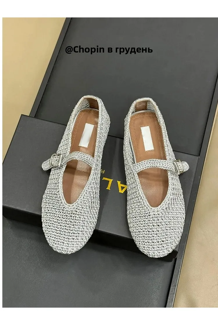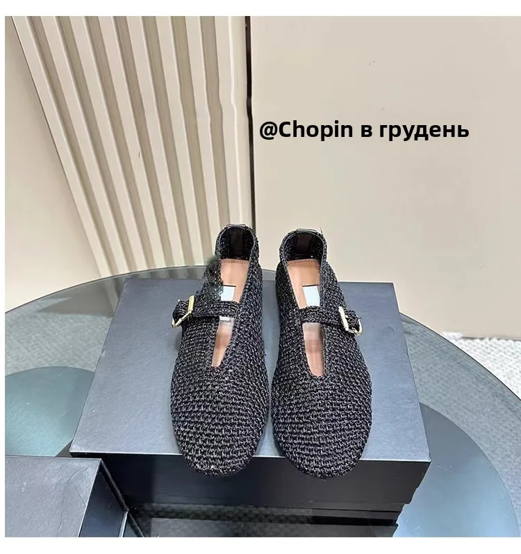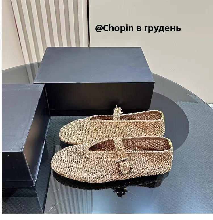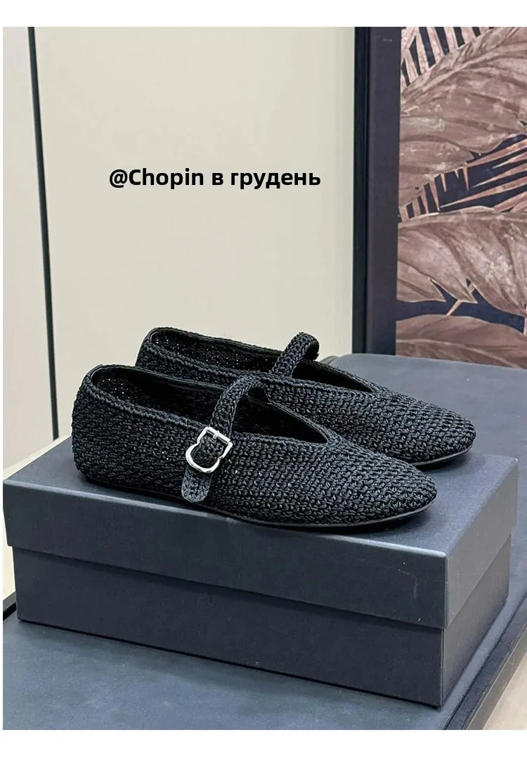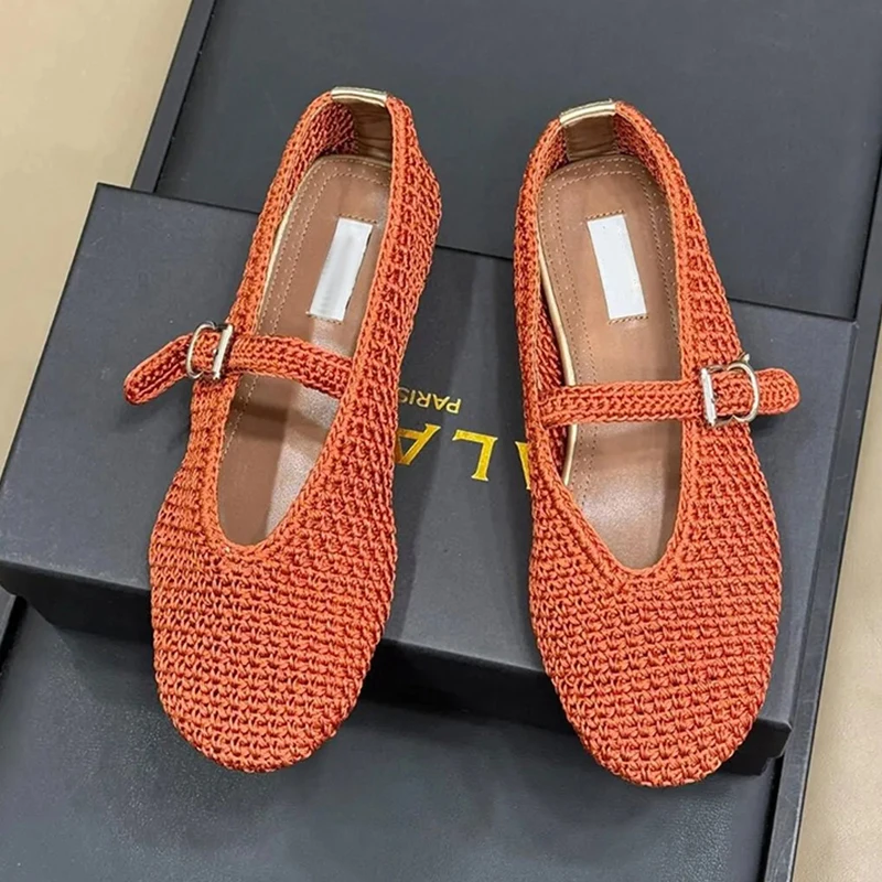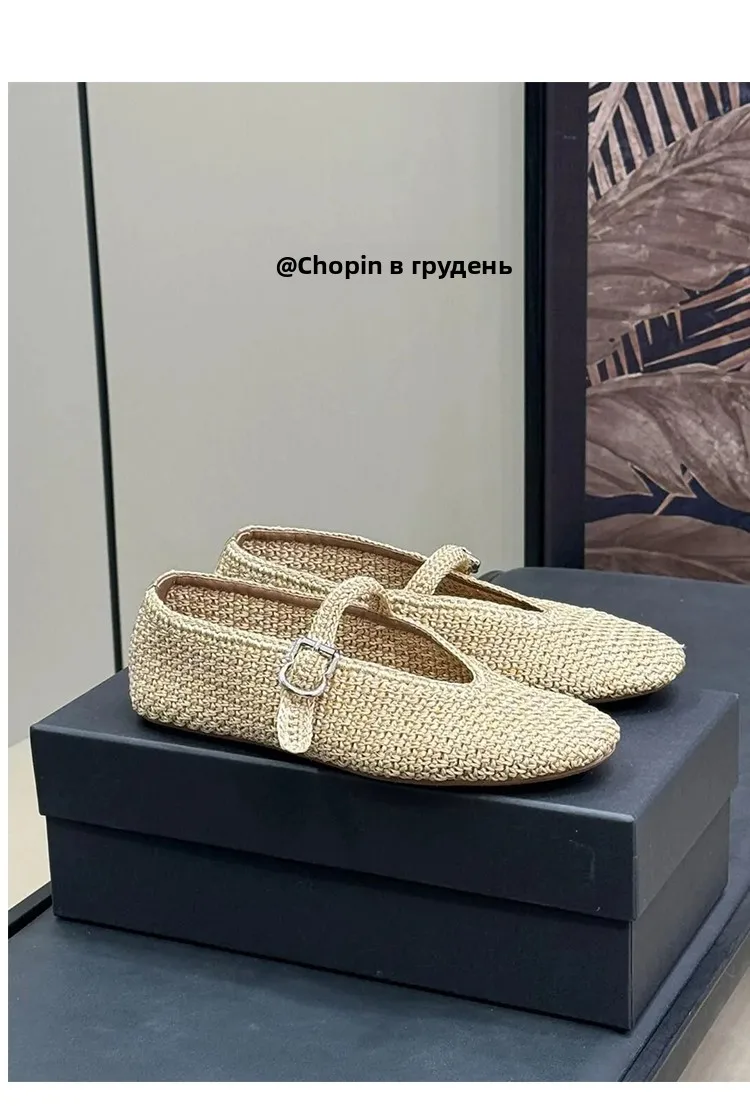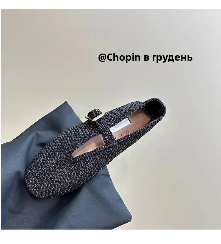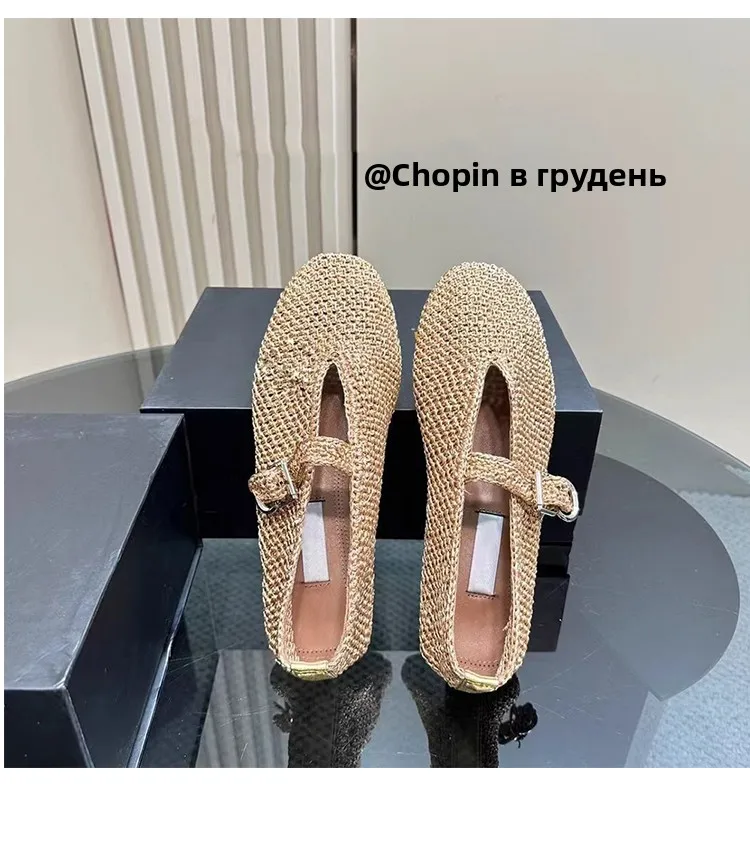 Spring New Sle Woven Leather Mary Jane Flat Bot Women’s oes Casual Low Heel Rubber Outsole round Toe Slip-On oes
