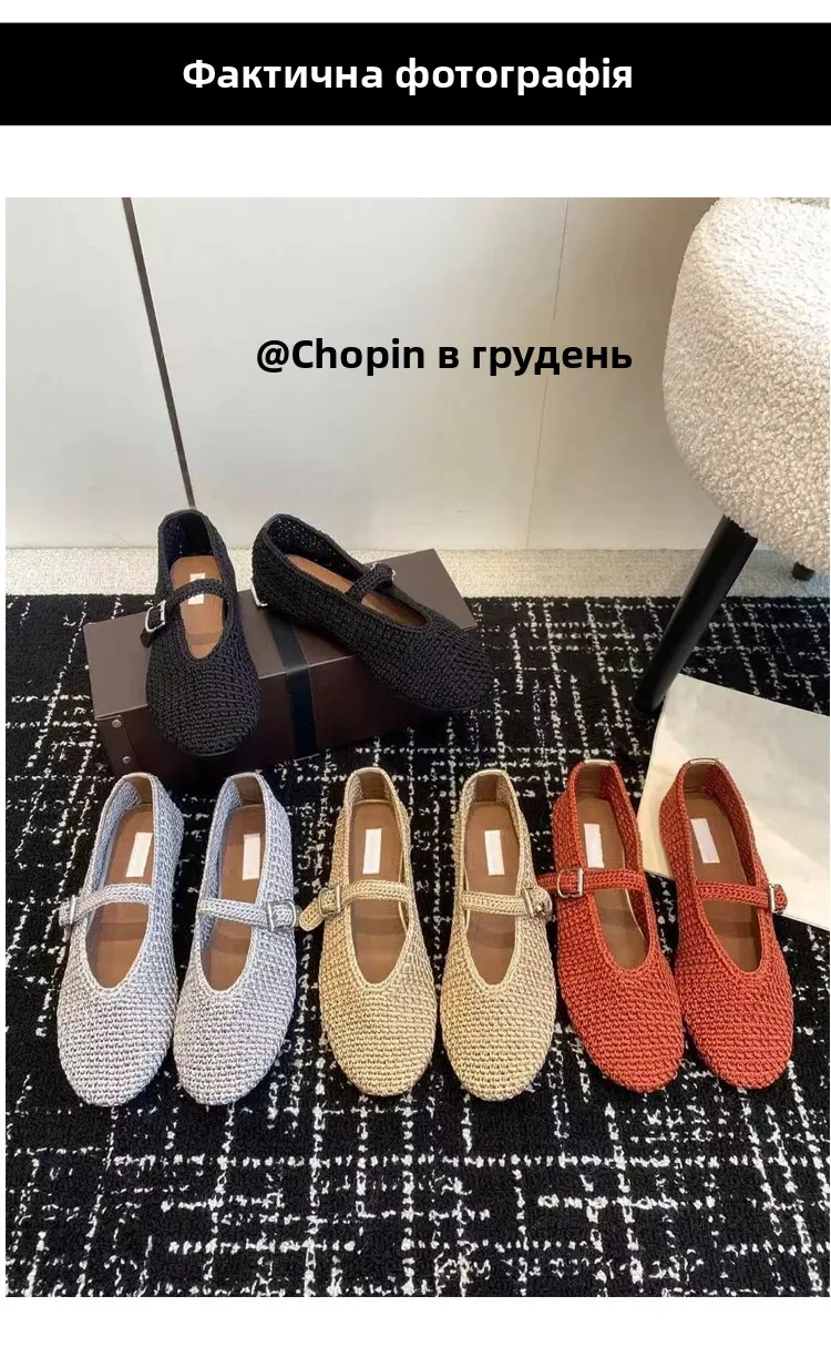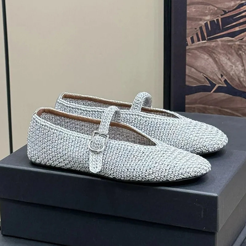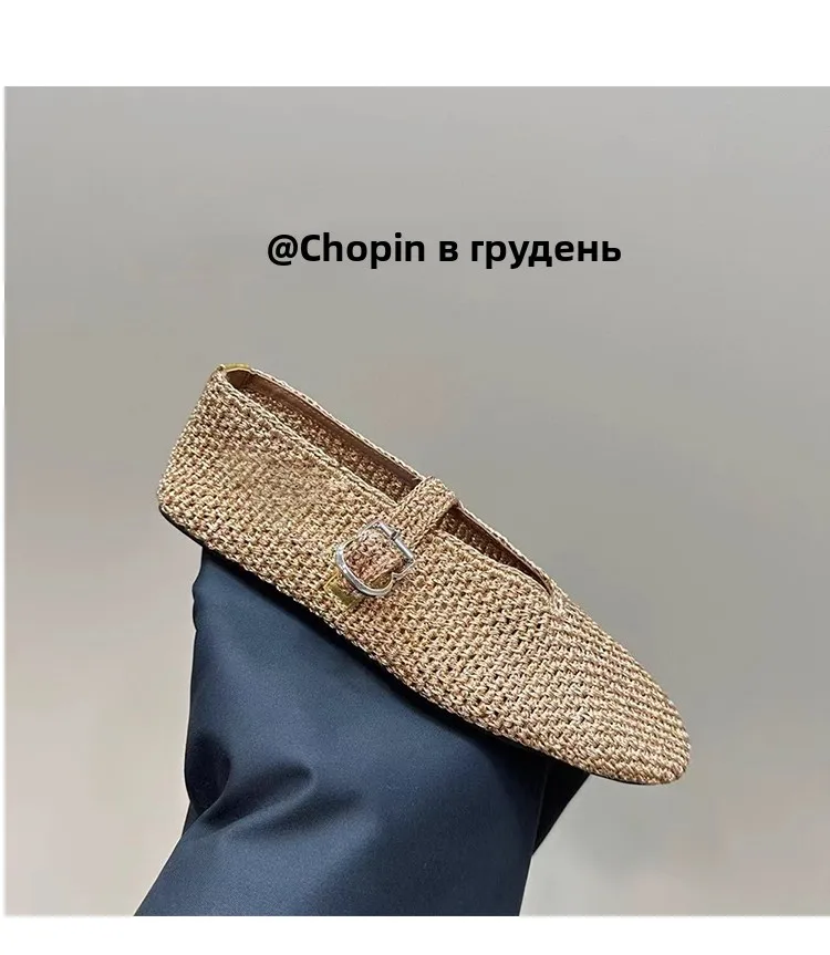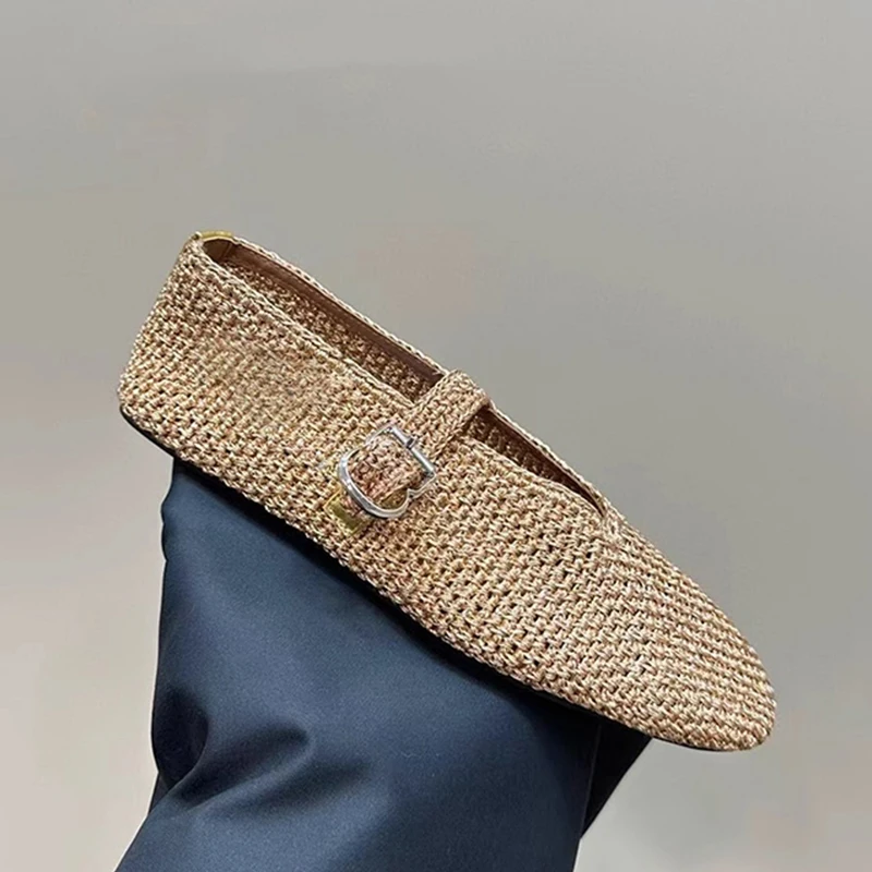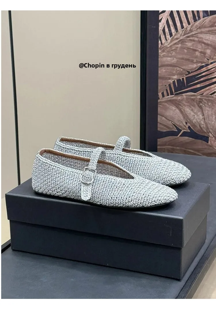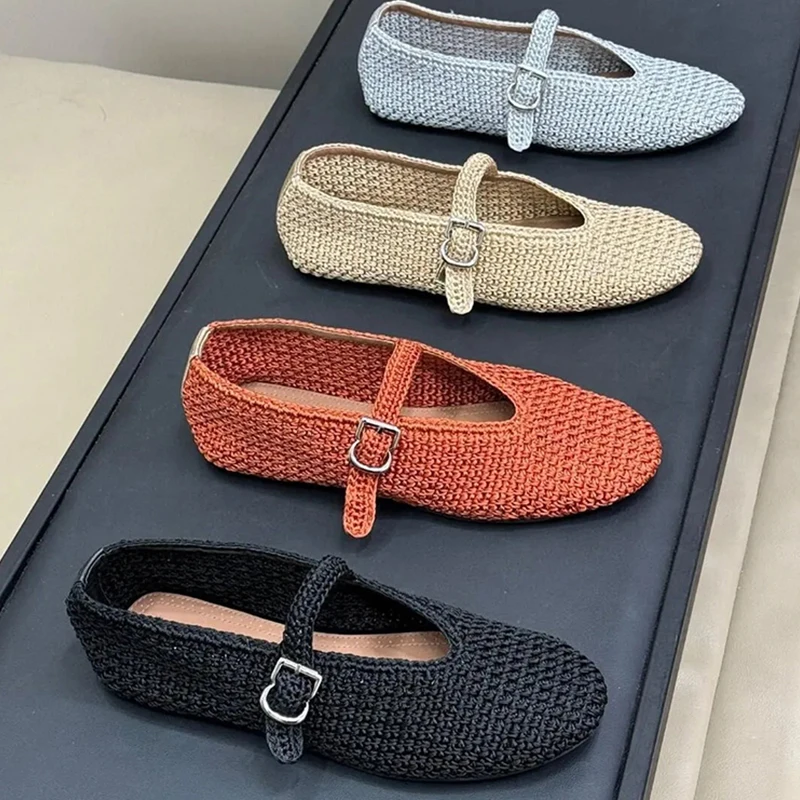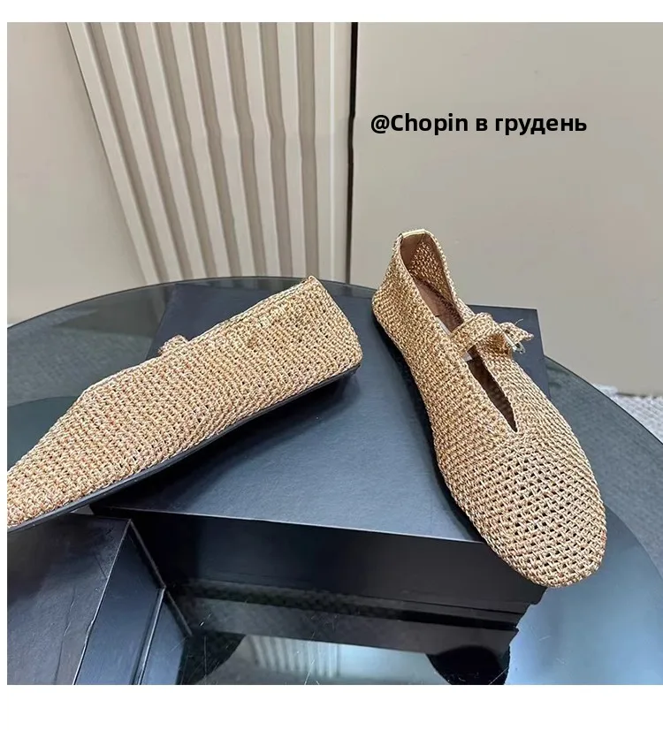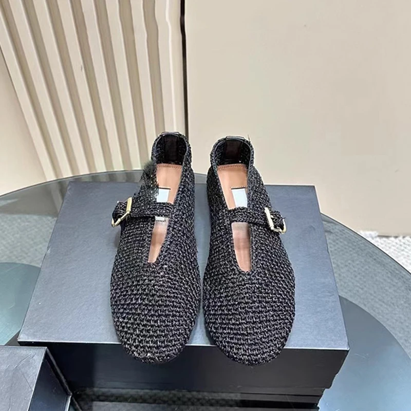 Spring New Sle Woven Leather Mary Jane Flat Bot Women’s oes Casual Low Heel Rubber Outsole round Toe Slip-On oes
