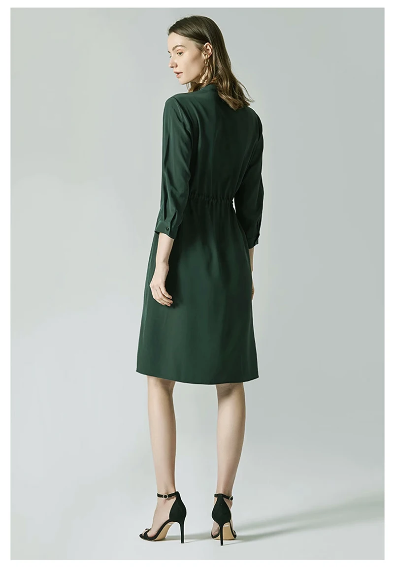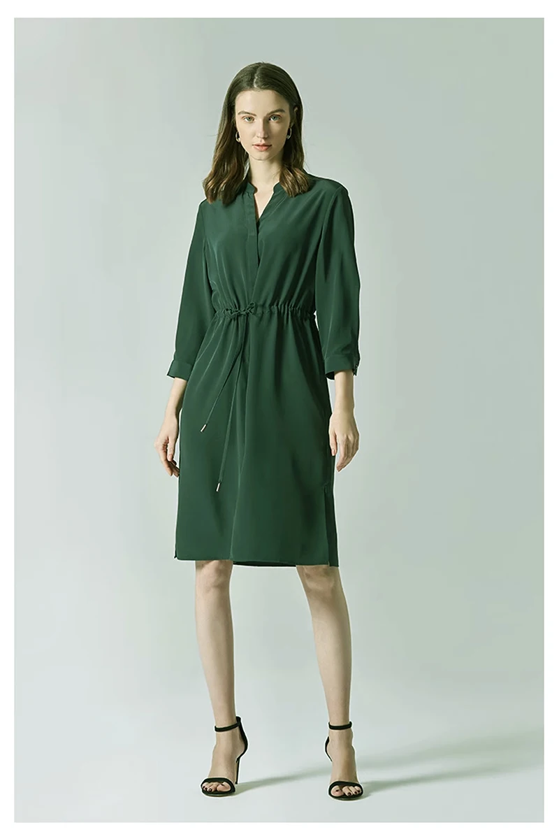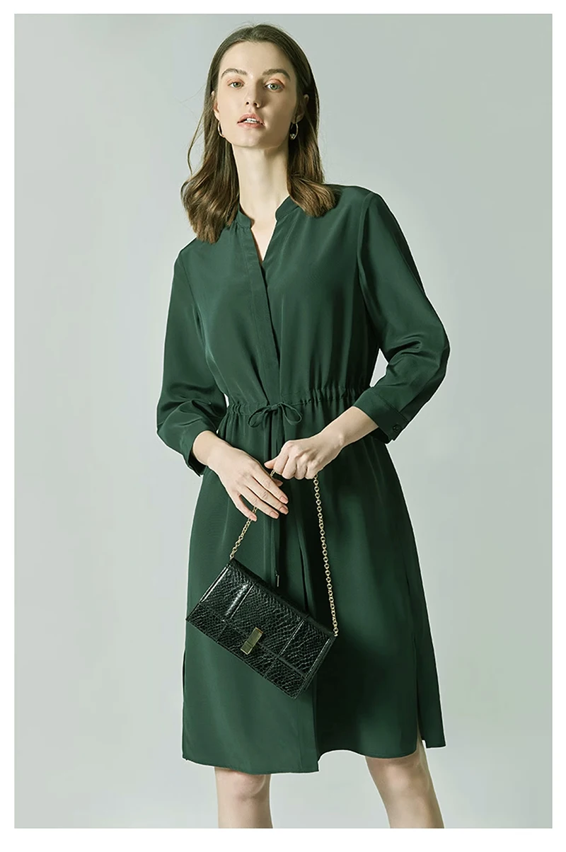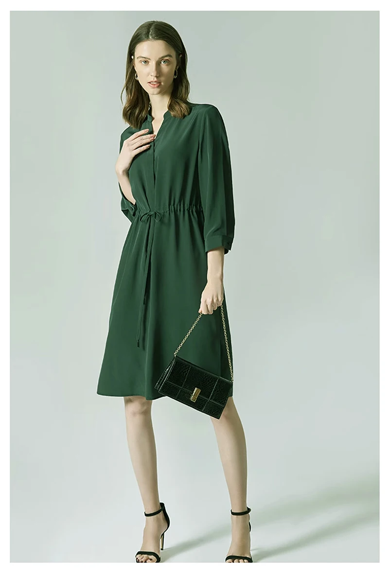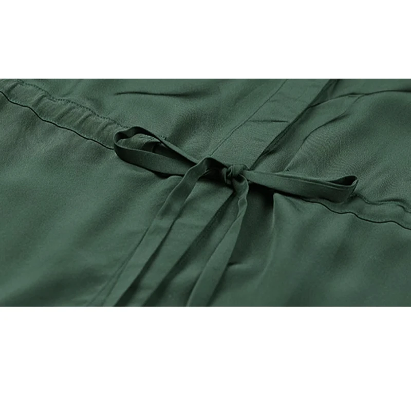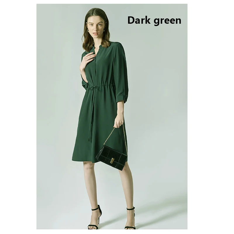 Be the first to review “Spring summer 100% Silk Women’s Dress Dark Green Stand Collar Lace-up Mid-length Skirt Business Casual Temperament Women’s Dress”