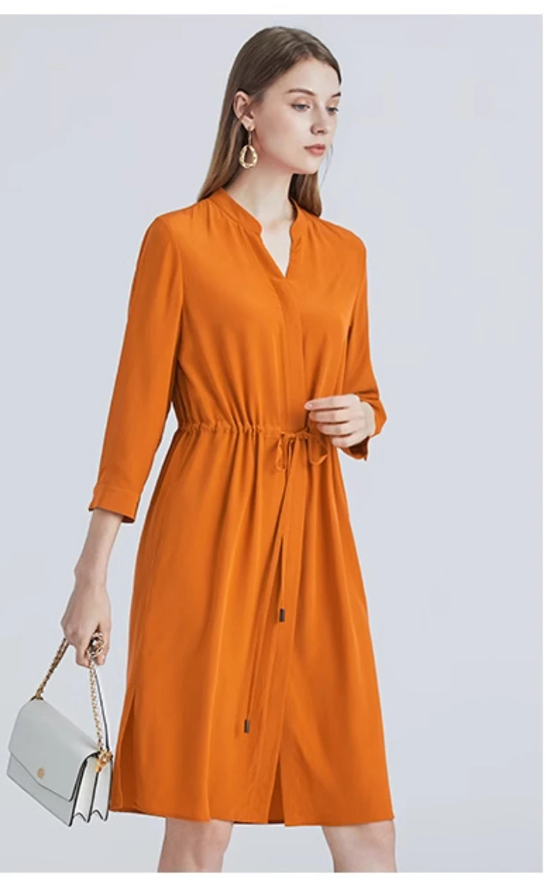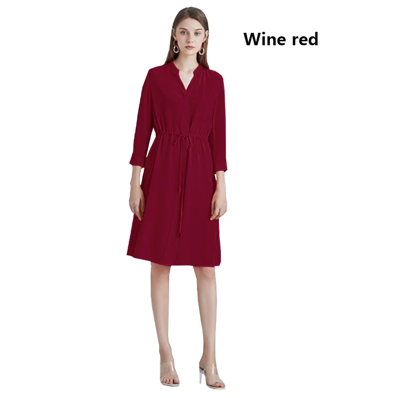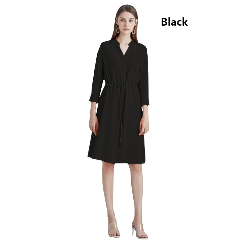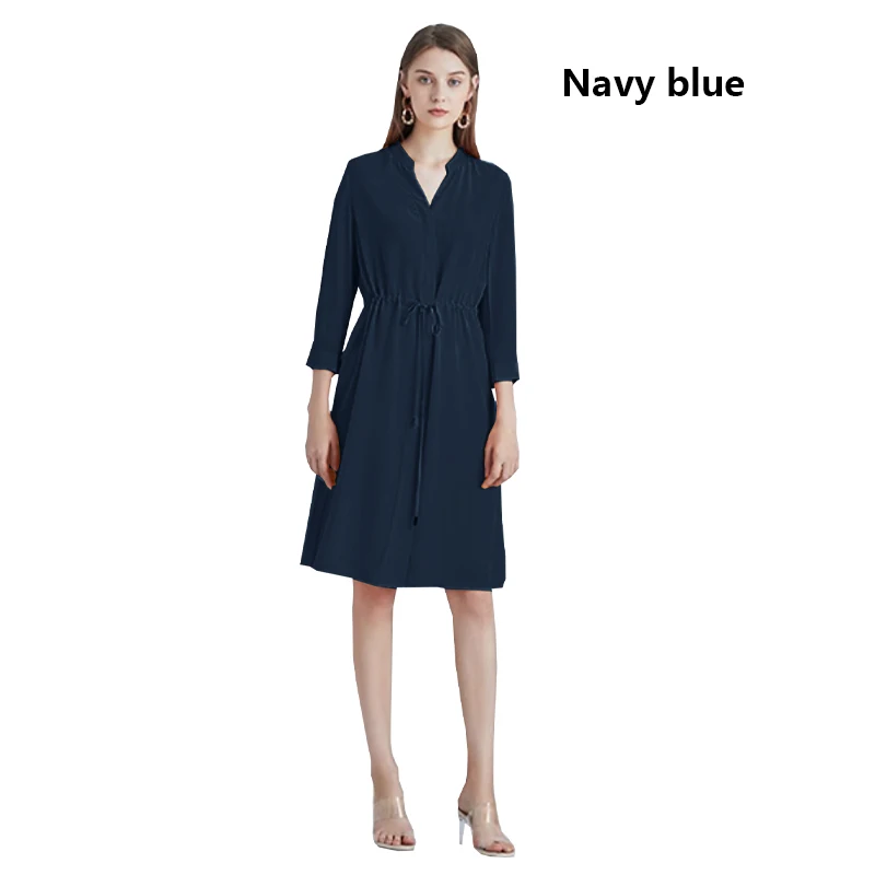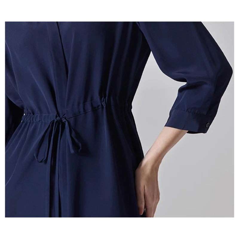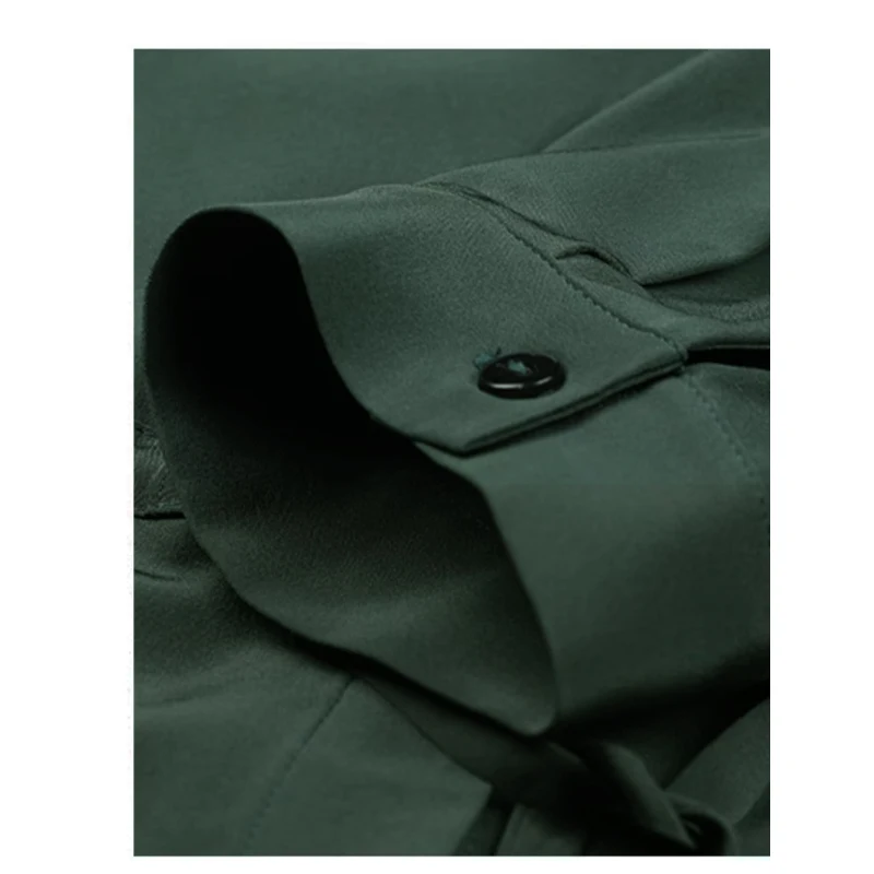 Be the first to review “Spring summer 100% Silk Women’s Dress Dark Green Stand Collar Lace-up Mid-length Skirt Business Casual Temperament Women’s Dress”