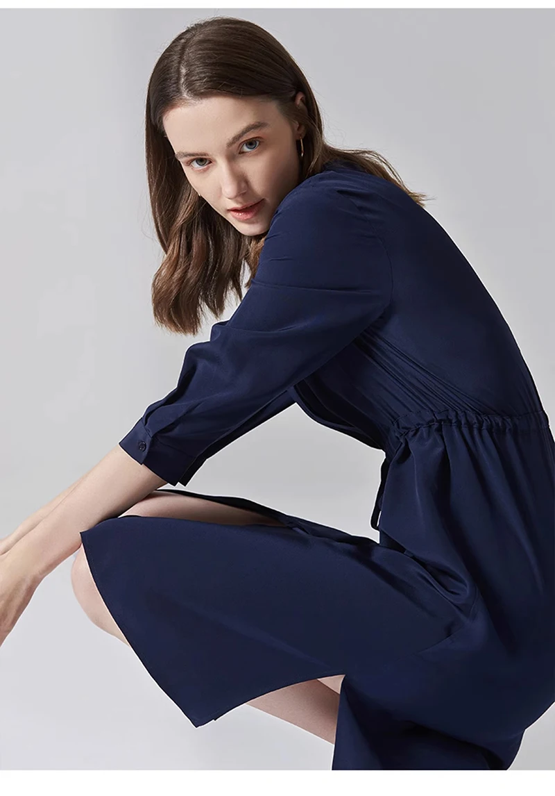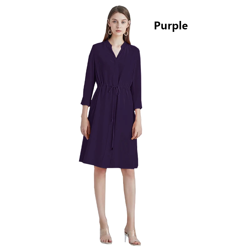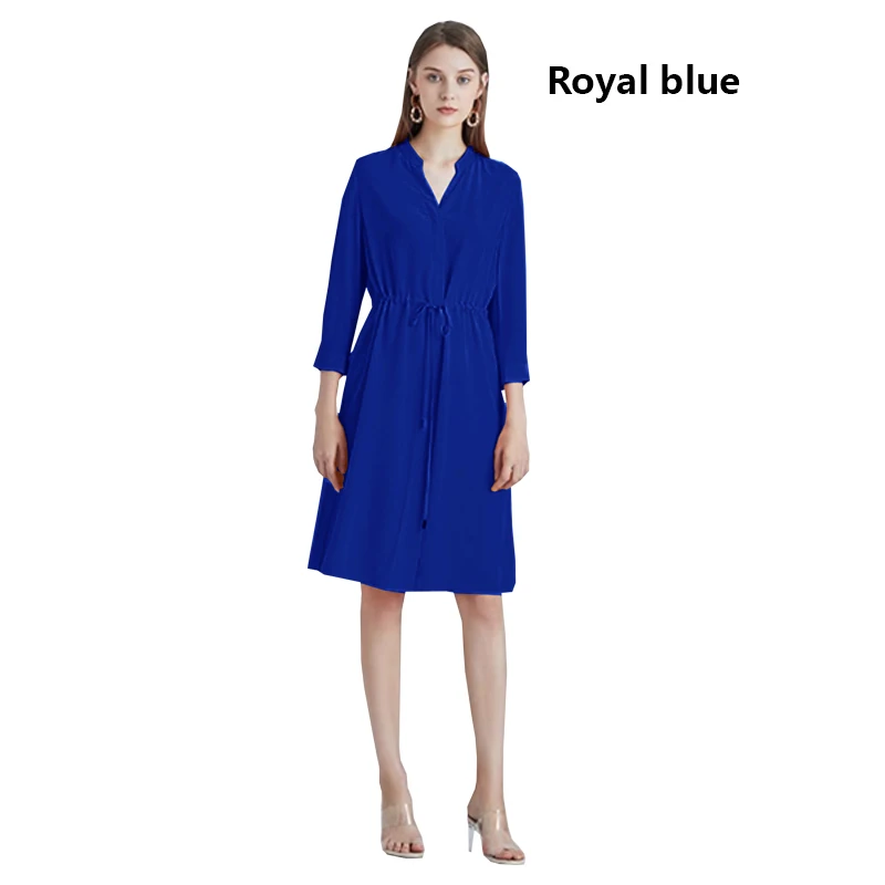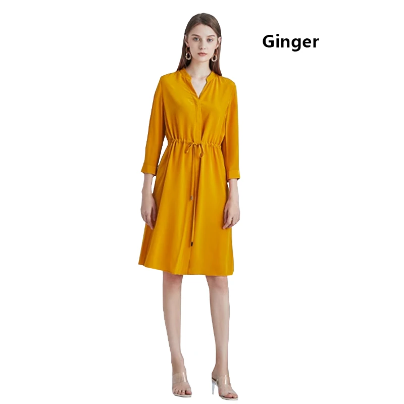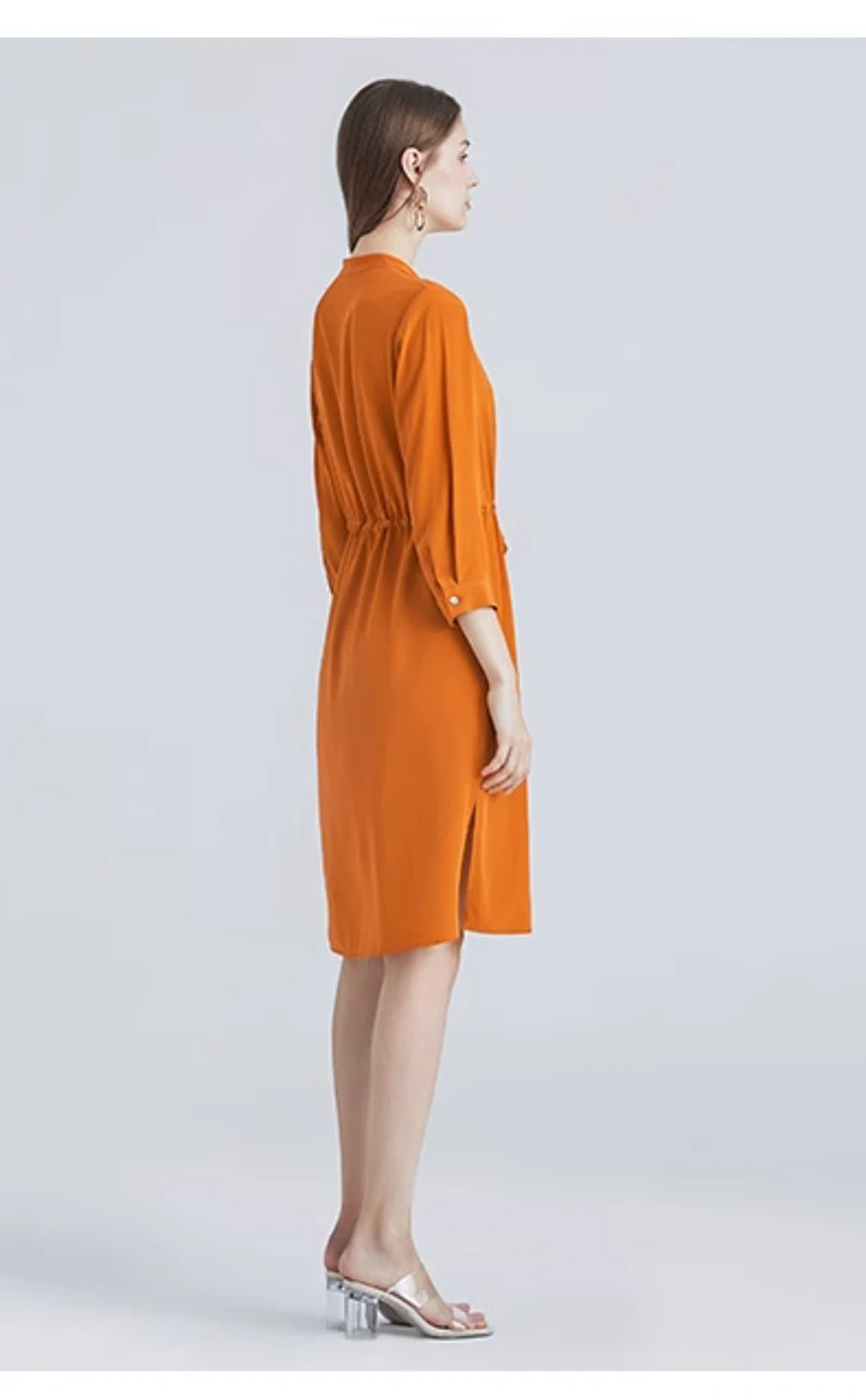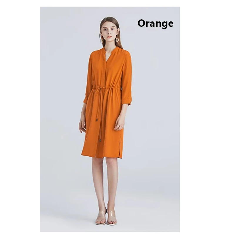 Be the first to review “Spring summer 100% Silk Women’s Dress Dark Green Stand Collar Lace-up Mid-length Skirt Business Casual Temperament Women’s Dress”