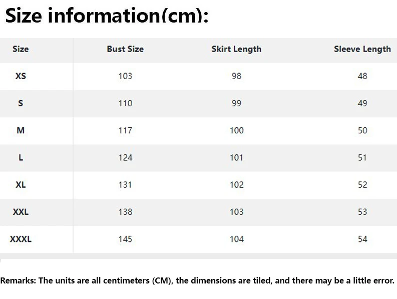• size_info: {"sizeInfoList":[{"length":{"cm":"103","inch":"40.55"},"size":"XS","vid":872},{"length":{"cm":"110","inch":"43.31"},"size":"S","vid":100014064},{"length":{"cm":"117","inch":"46.06"},"size":"M","vid":361386},{"length":{"cm":"124","inch":"48.82"},"size":"L","vid":361385},{"length":{"cm":"131","inch":"51.57"},"size":"XL","vid":100014065},{"length":{"cm":"138","inch":"54.33"},"size":"XXL","vid":4182},{"length":{"cm":"145","inch":"57.09"},"size":"XXXL","vid":4183}]}