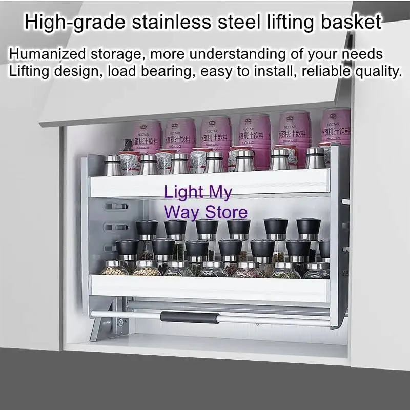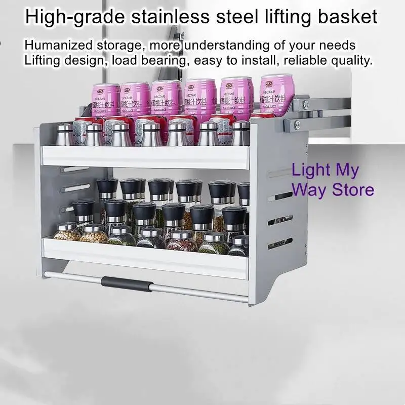 Stainless Steel Aluminum Alloy Hanging Lifting Basket Kitchen Pull-Down Cabinet Storage Rack