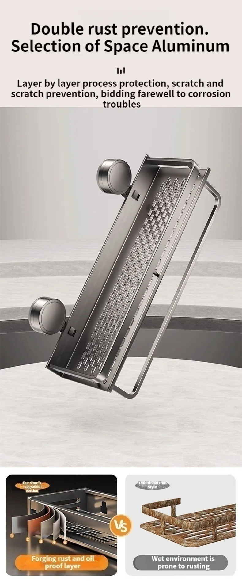 Suction cup storage rack, bathroom, non perforated artifact, toilet, washbasin, bathroom, wall mounted storage